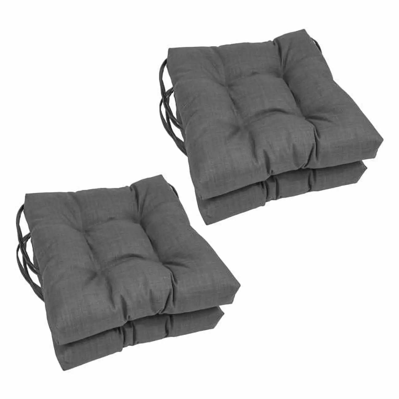 16 in. Spun Polyester Solid Outdoor Square Tufted Chair Cushions. Cool Gray – Set of 4