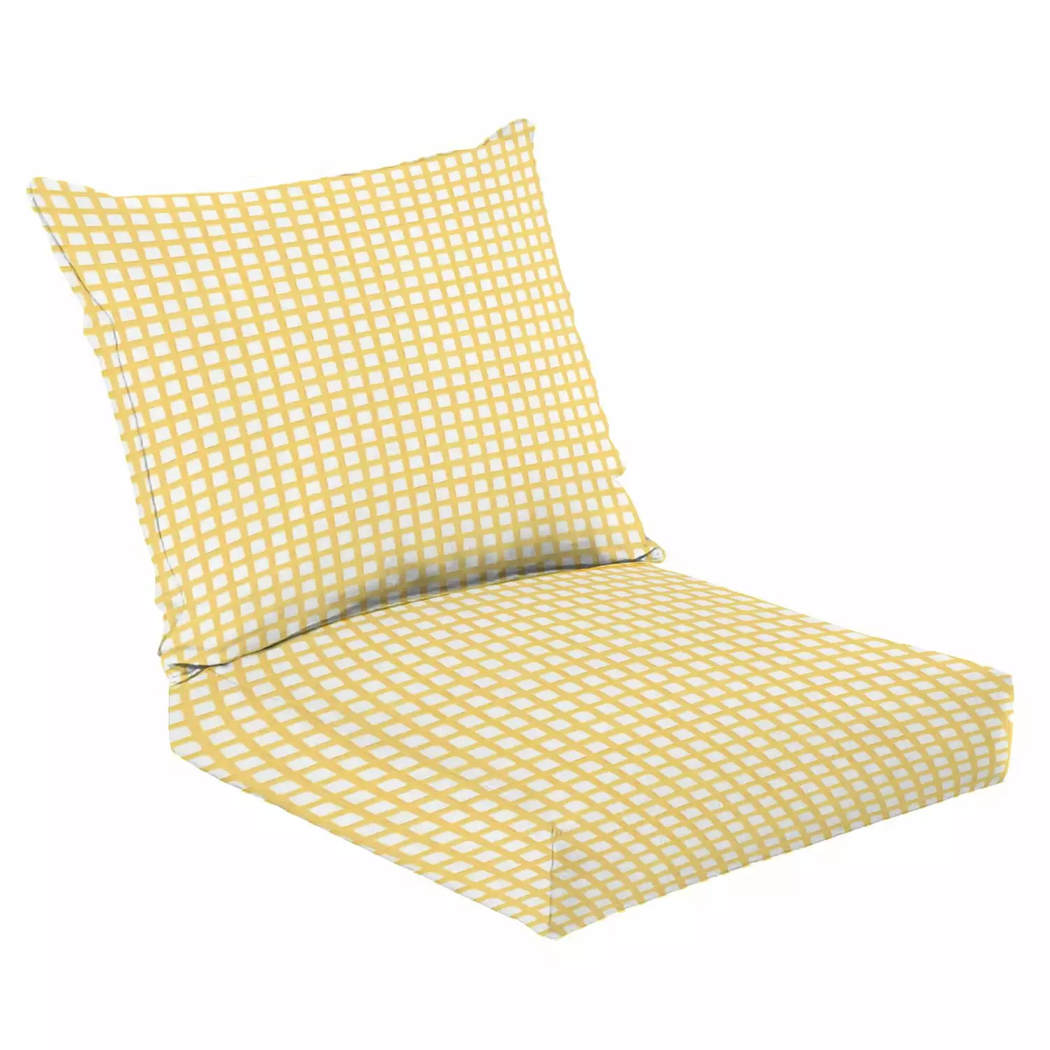 2 Piece Indoor/Outdoor Cushion Set Gingham pattern seamless Plaid reiterate yellow white Design Casual Conversation Cushions & Lounge Relaxation Pillows for Patio Dining Room Office Seating
