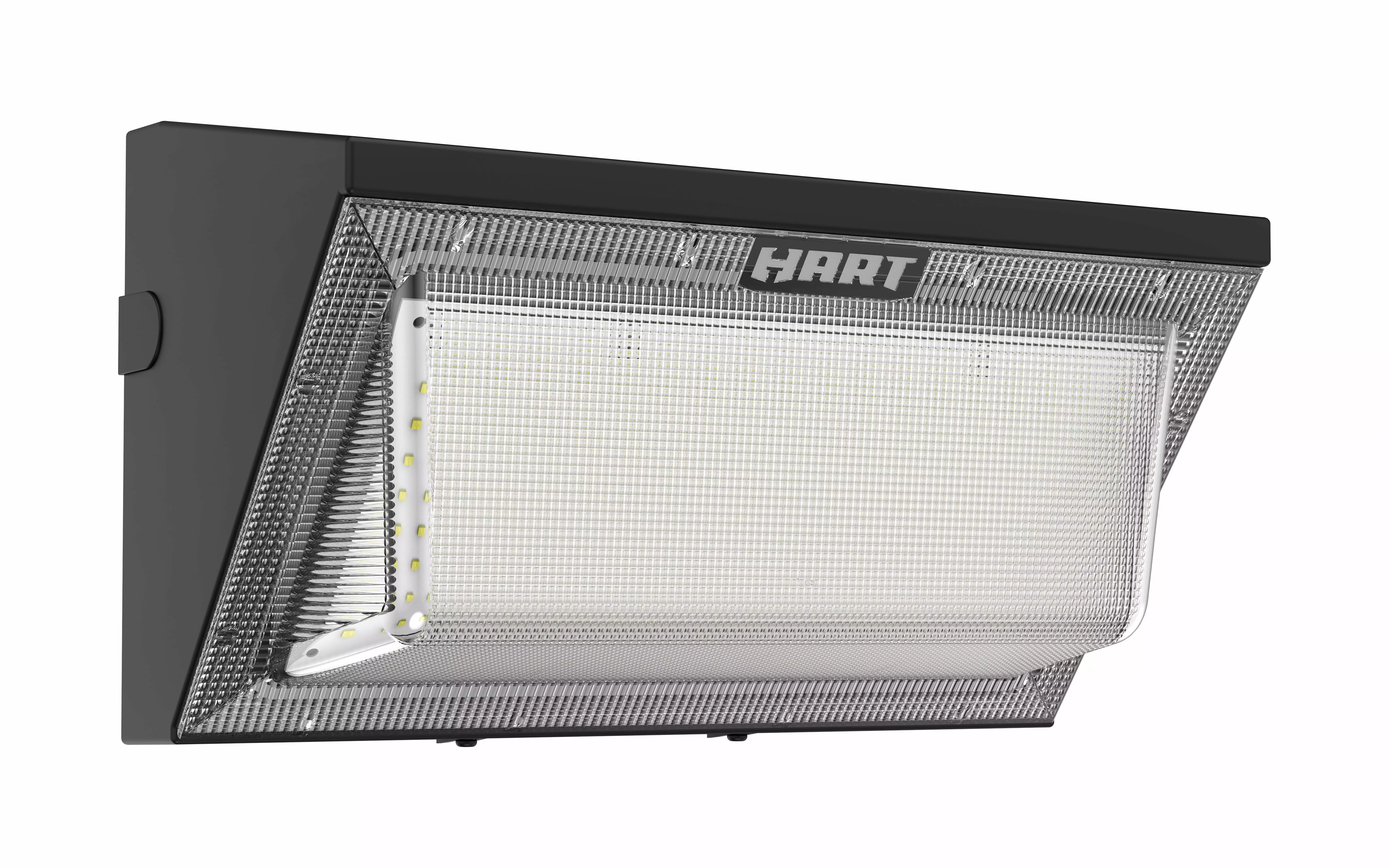 HART Direct Wire Pack Light with Clear Lens Cover. Dusk to Dawn. Black. 3500 Lumens