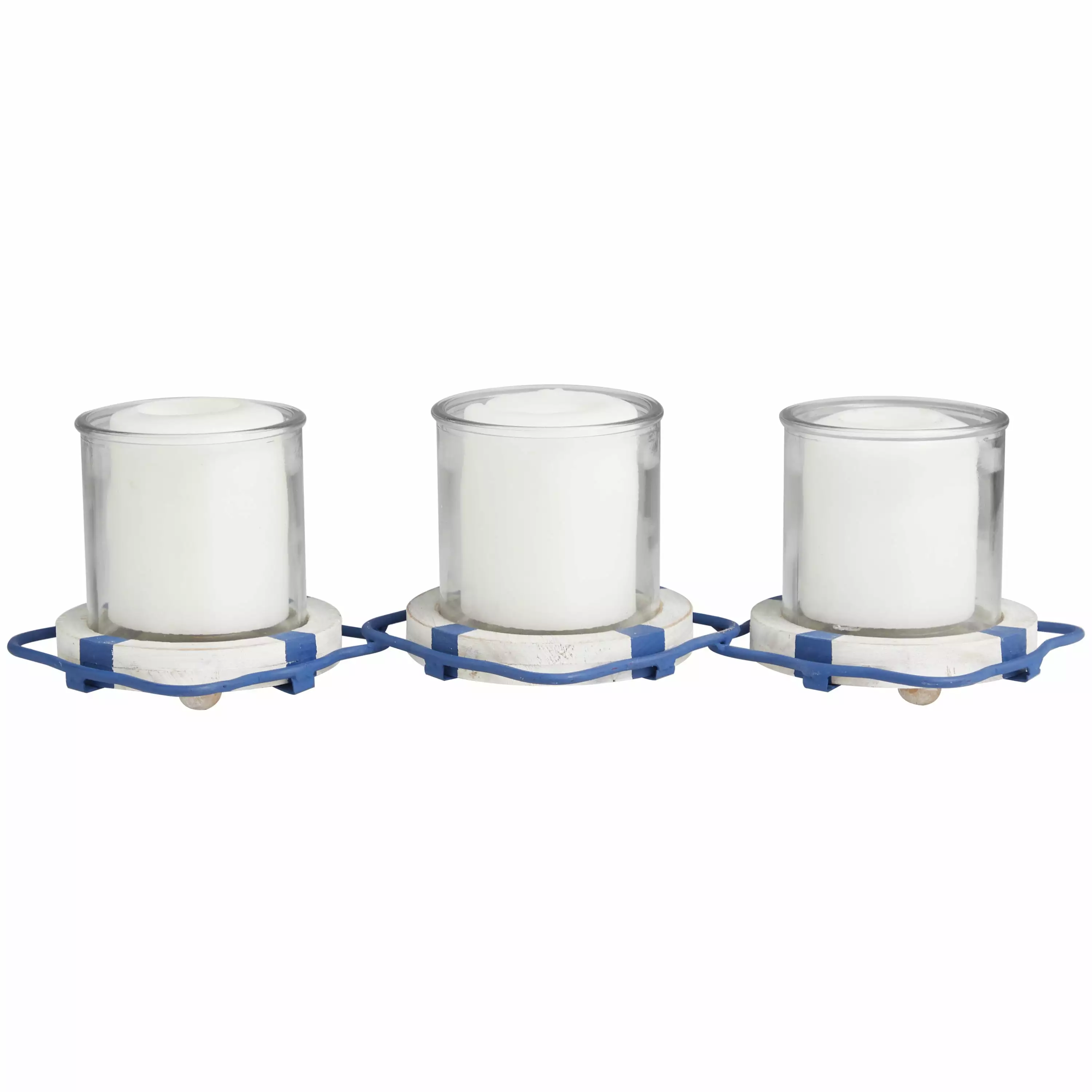 DecMode 3 Candle Blue Metal Buoy Distressed 3 Linked Candle Holder with White Wood Accents