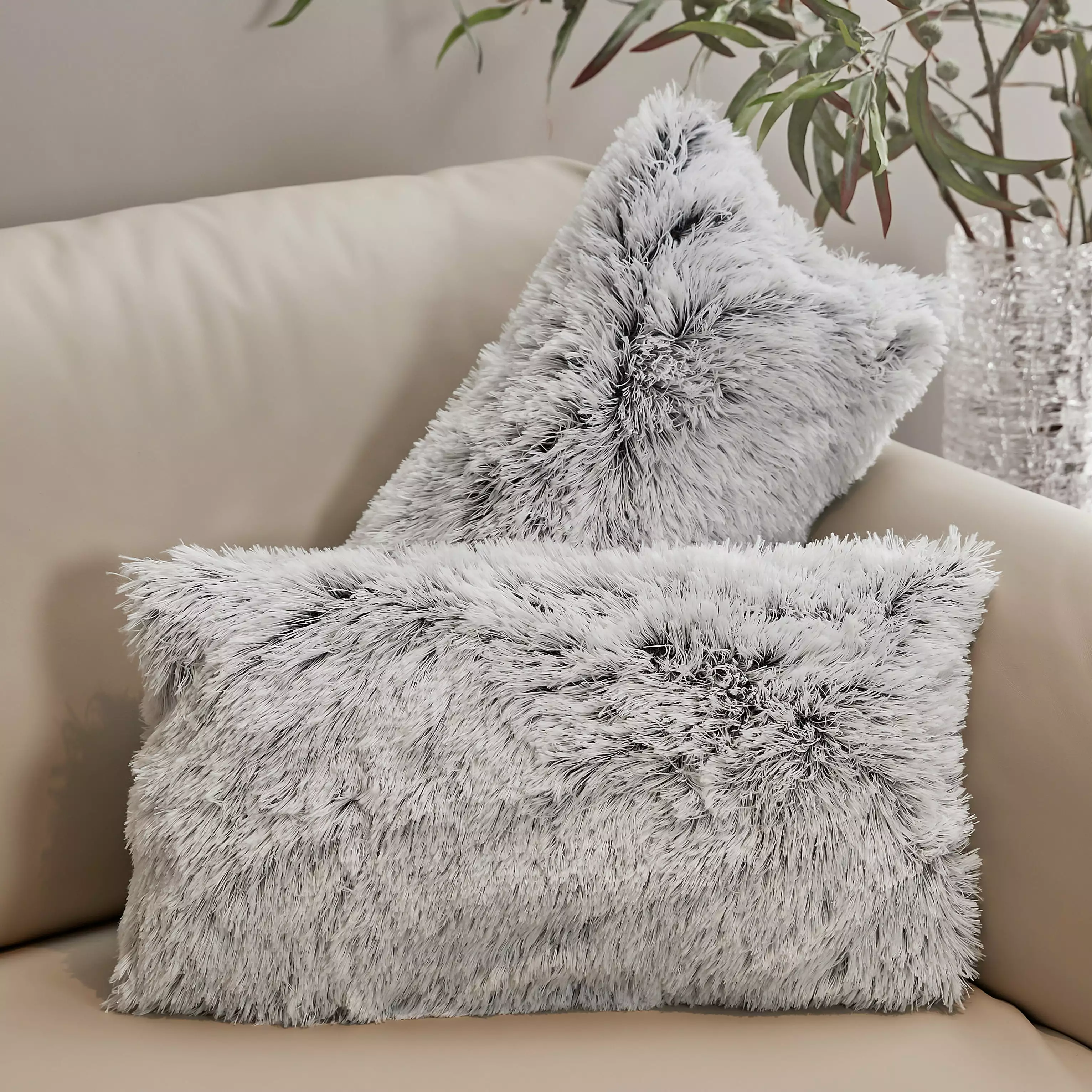 Cheer Gatherion Shaggy Long Hair Throw Pillows – Super Soft and Plush Faux Fur Lumbar Accent Pillows – 12 x 20 – Set of 2