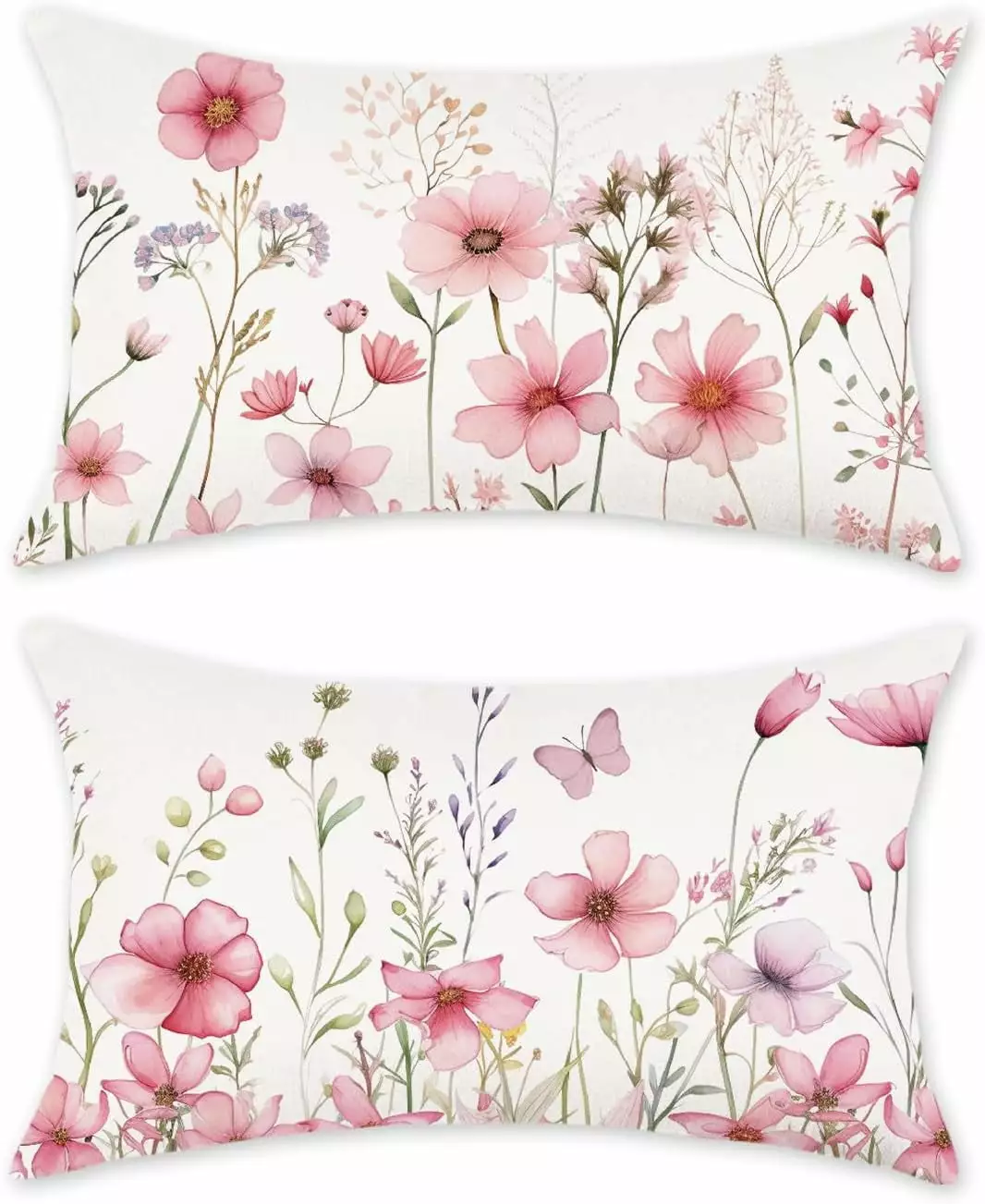 Floral Throw Pillow Covers 12×20 Set of 2 Spring Summer Outdoor Decor Lumbar Pillow Cases for Home Couch Decorations Pink