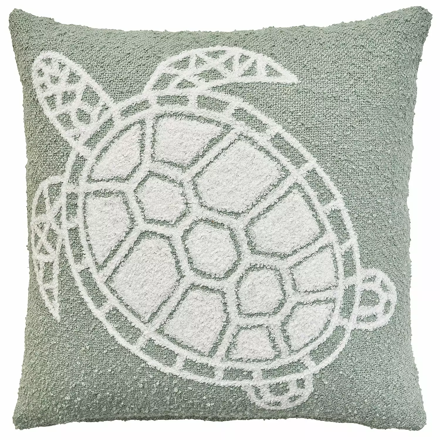 Mina Victory Towel Embroidered Sea Turtle 18 x 18 Indoor Outdoor Throw Pillow Aqua