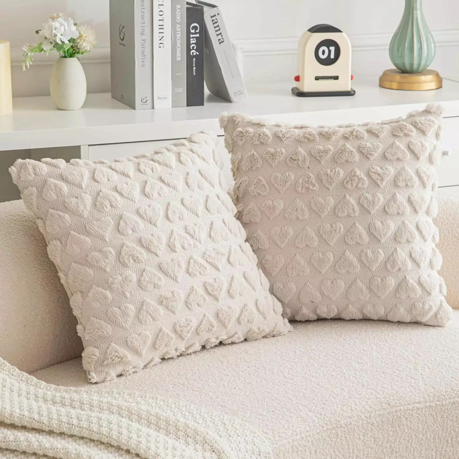 Sanmadrola Pillow Covers 2 Pack Heart Love Cute Decorative Throw Pillow Covers 18×18 Soft Plush Faux Fur Wool Pillow Covers for Couch Sofa Home Valentines Day Beige