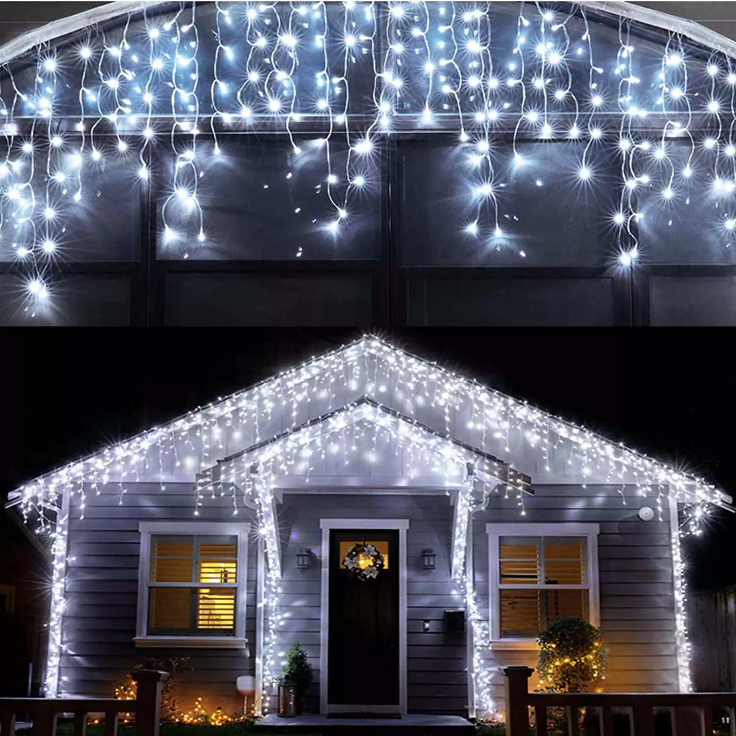 Christmas Icicle Lights Outdoor Decorations 120 LED 13ft Curtain Fairy String Light.Clear Wire LED String Light Indoor Decor for Wedding Party Christmas Holiday Decor