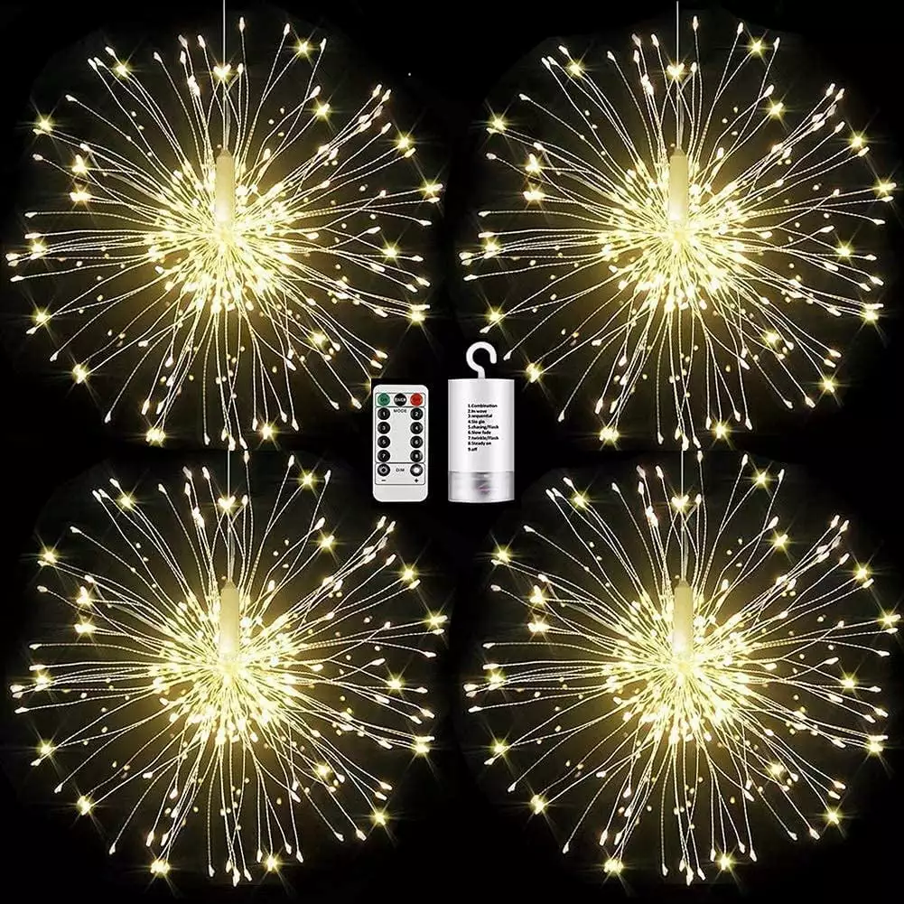 4 PCS Firework Light Waterproof 120 LED Starburst String Lights 8 Modes Dimmable Fairy Lights with Remote DIY Landscape Light for Walkway Pathway Backyard Garden Patio Decoration