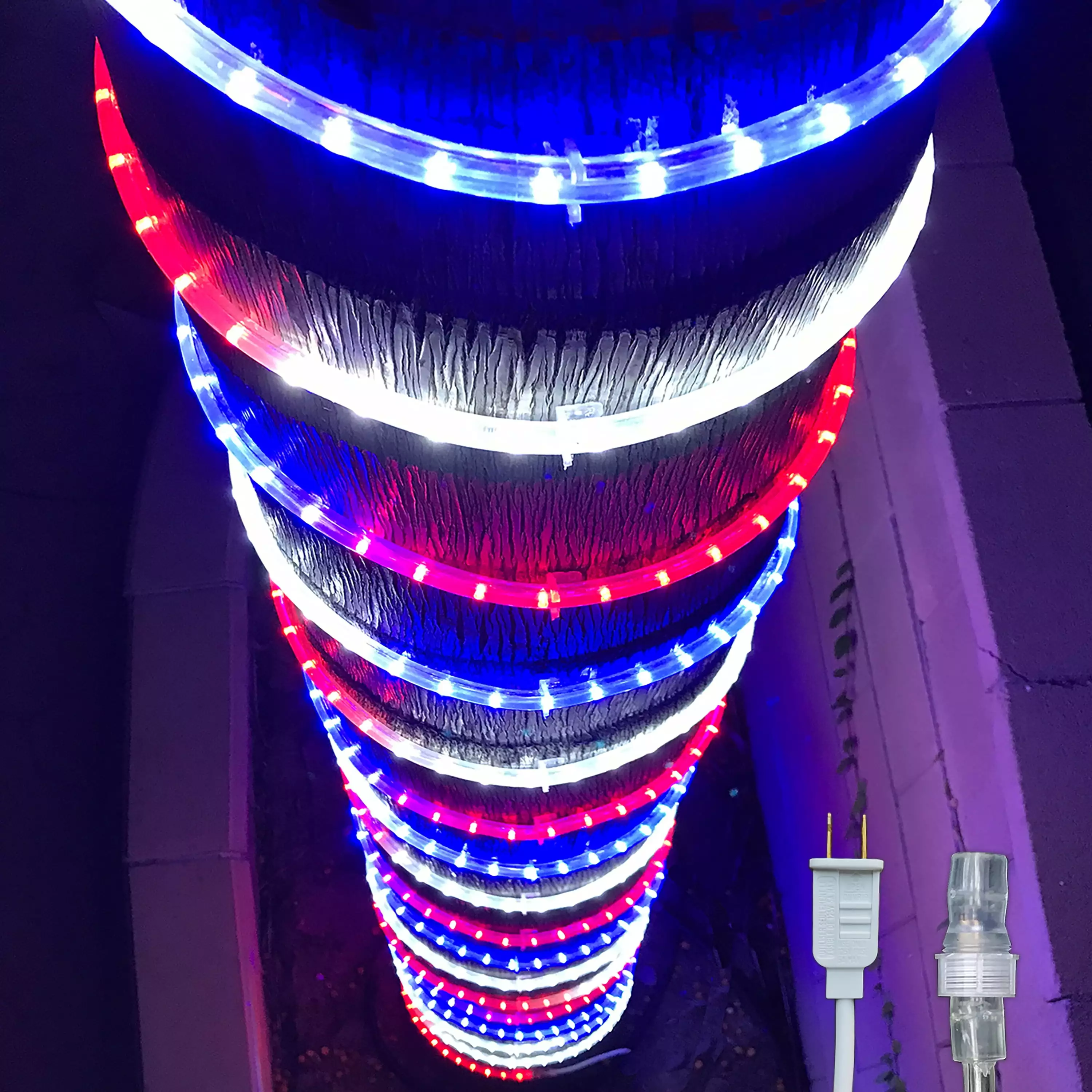 Russell Decor LED Neon Patriotic Rope lights for 4th July Memorial Day Patio Deck Waterproof connectable Red White Blue (30ft)