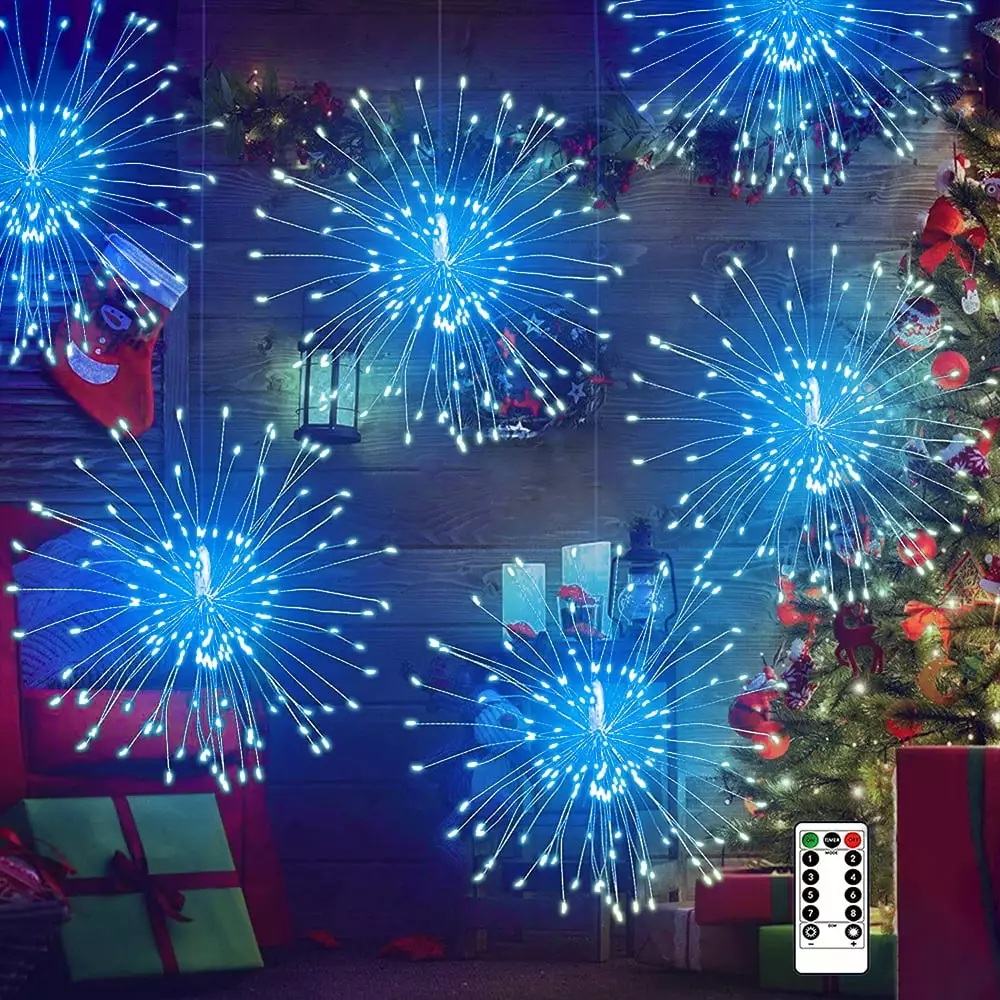 Solarera 6Pcs Firework Lights 150 LED DIY 8 Modes String Fairy Lights with Remote Control.Waterproof Decorative Starburst Lights for Christmas. Home. Patio. Indoor Outdoor 4th of July Decorations Blue