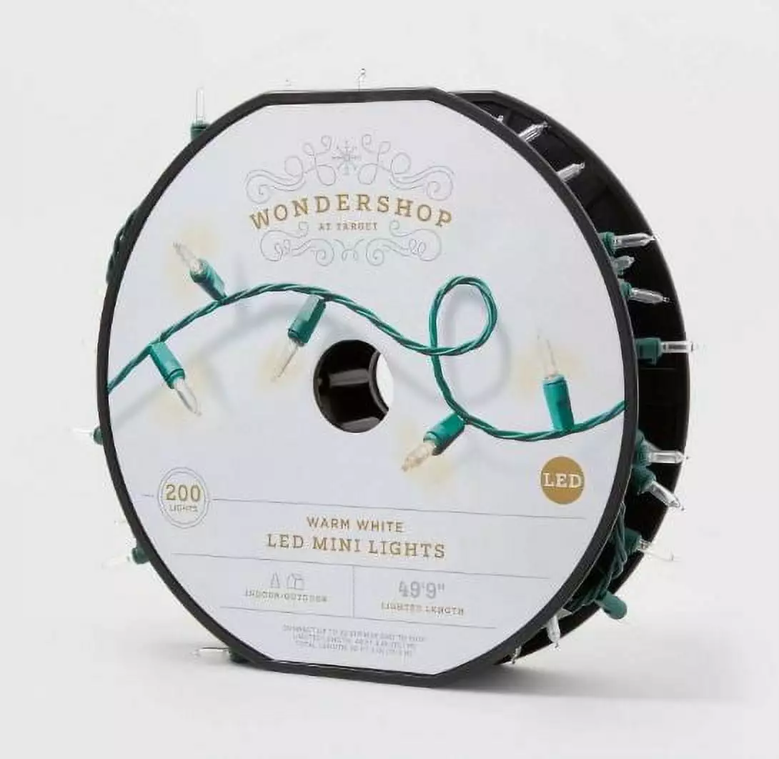 Wondershop 200ct LED Mini String Lights Warm White with Green Wire