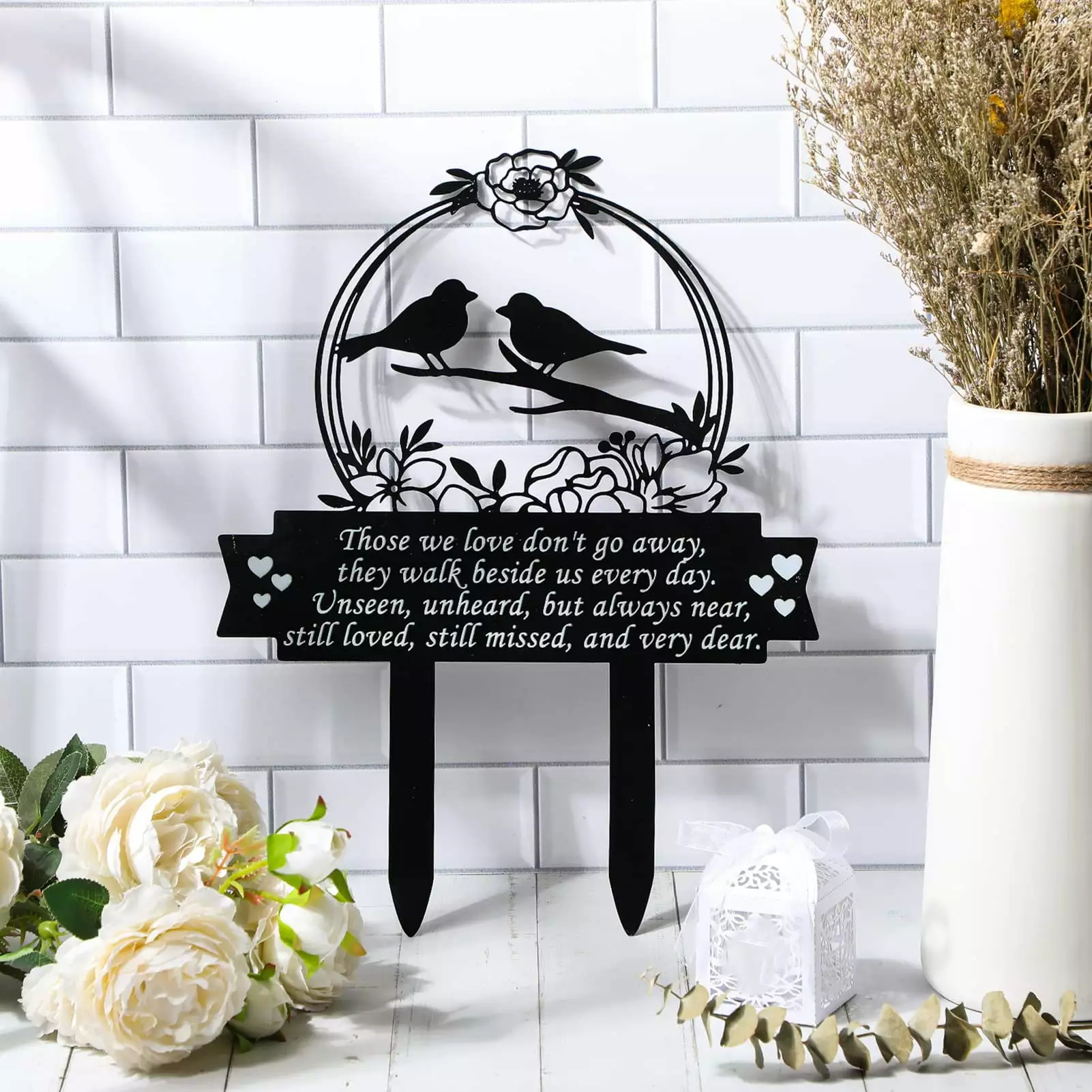 wirlsweal Sympathy Bird Plaque Black Color Double-sided Insert Sign Creative Yard Art Decorative Anti-rust Graveyard Sign Outdoor Yard Memorial Stake Garden Decor