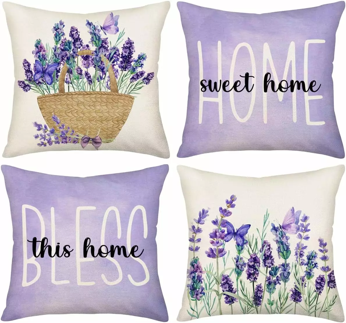 YCHII Lavender Home Sweet Home Throw Pillow Covers 18×18 Inch Outdoor Spring Summer Pillowcase Purple Butterfly Flower Binquireet Decorative Seasonal Cushion Cases for Houtilize Couch Sofa Bed Set of 4