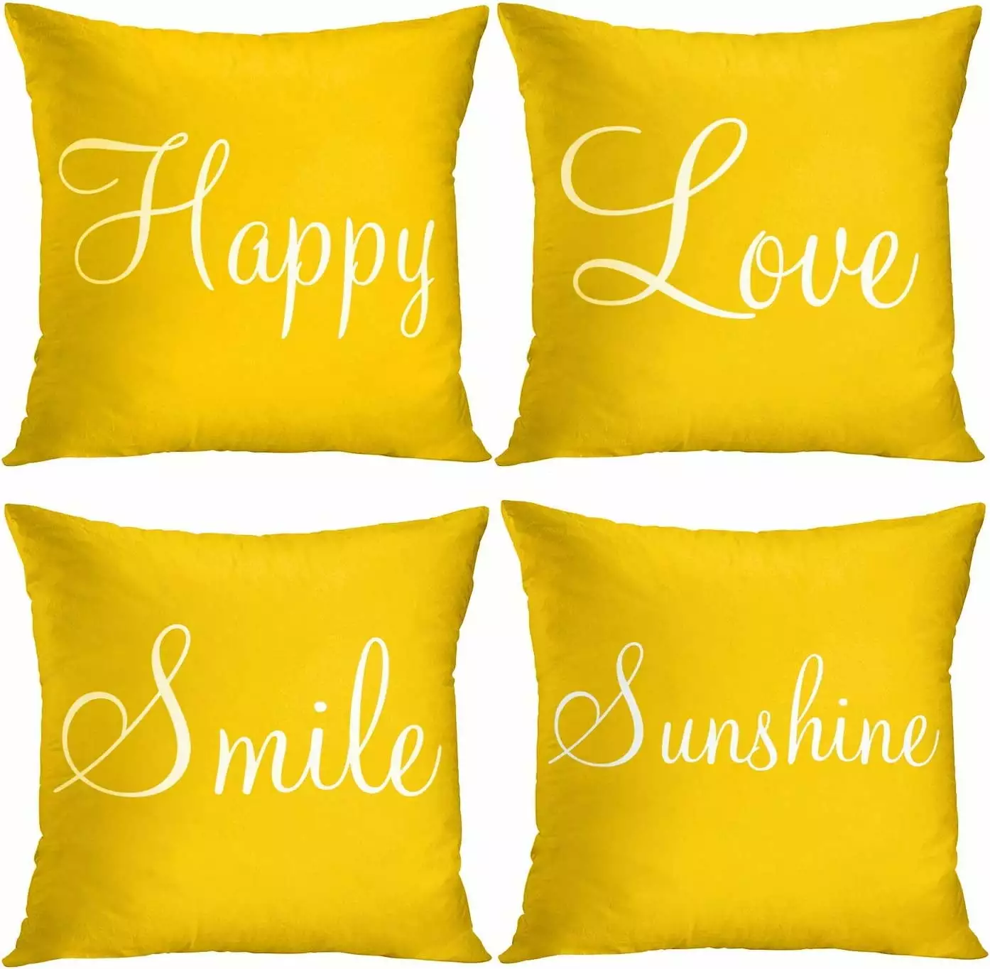 Yellow Set of 4 Throw Pillow Covers Furry Home Decor Pillow Cases Decorative 18X18 Inches Outdoor Cushion Couch Sofa Cojines Pillowcases Sunshine Happy Love Smile