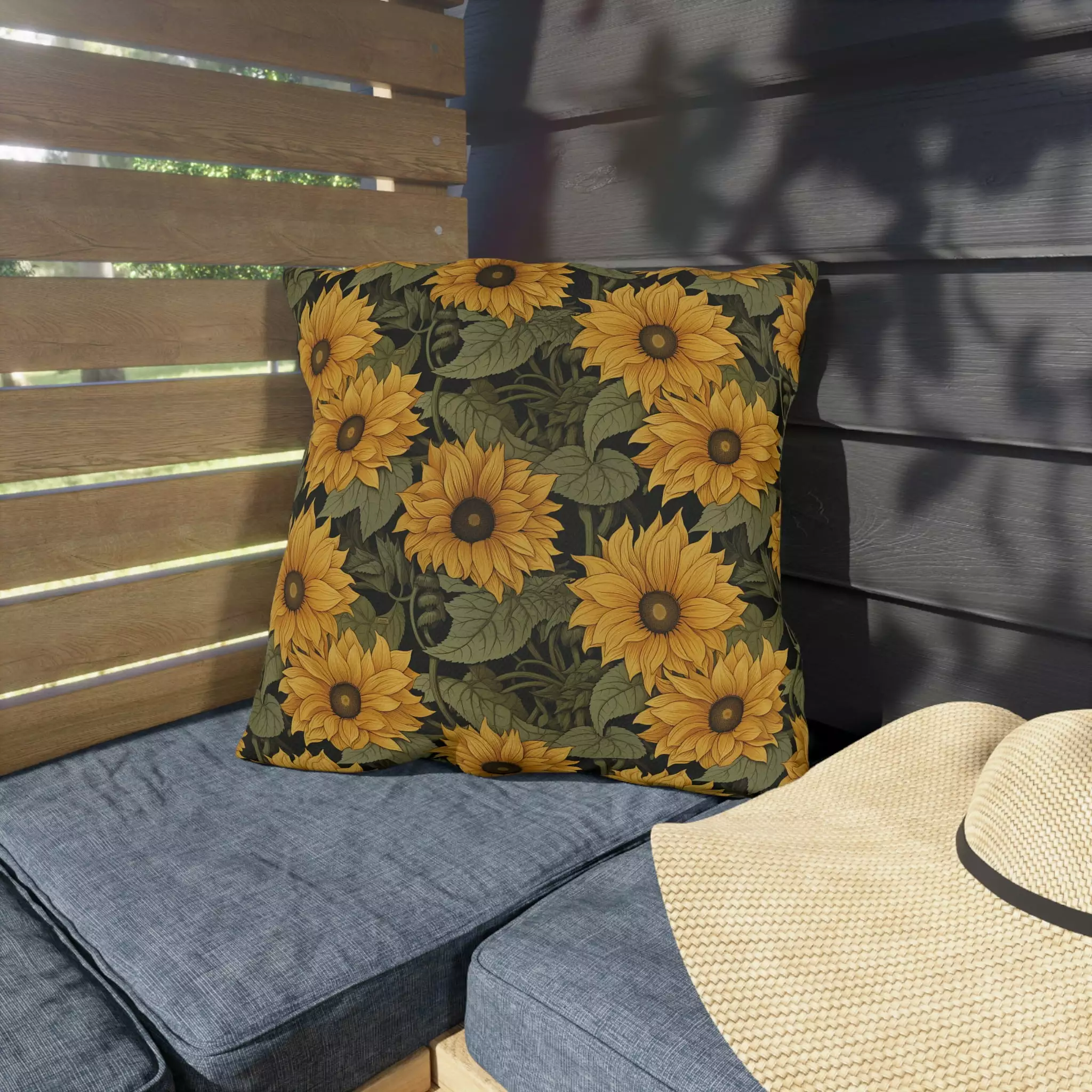 Yellow Sunflower Spun Polyester Outdoor Pillow