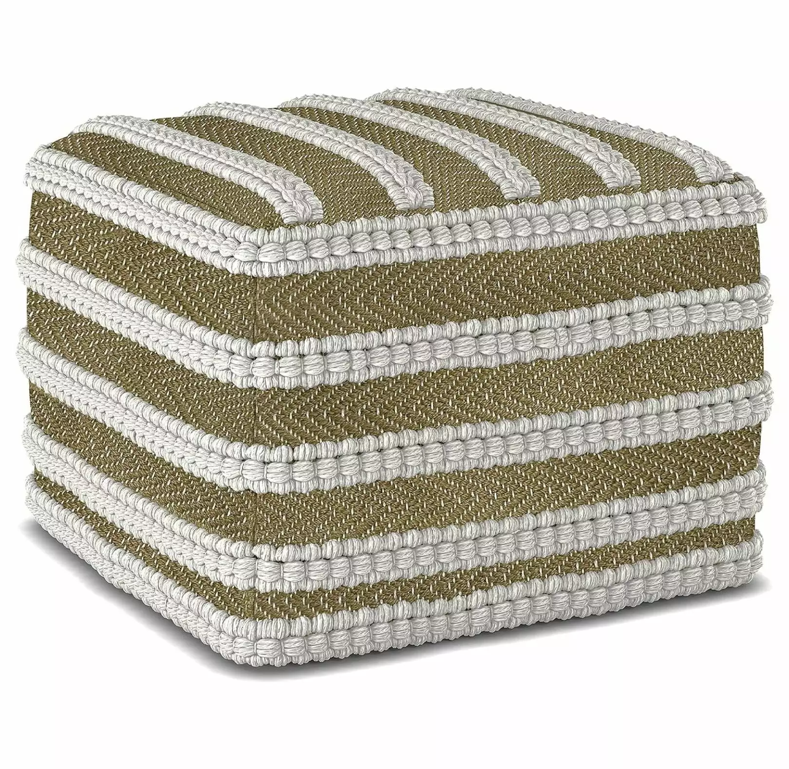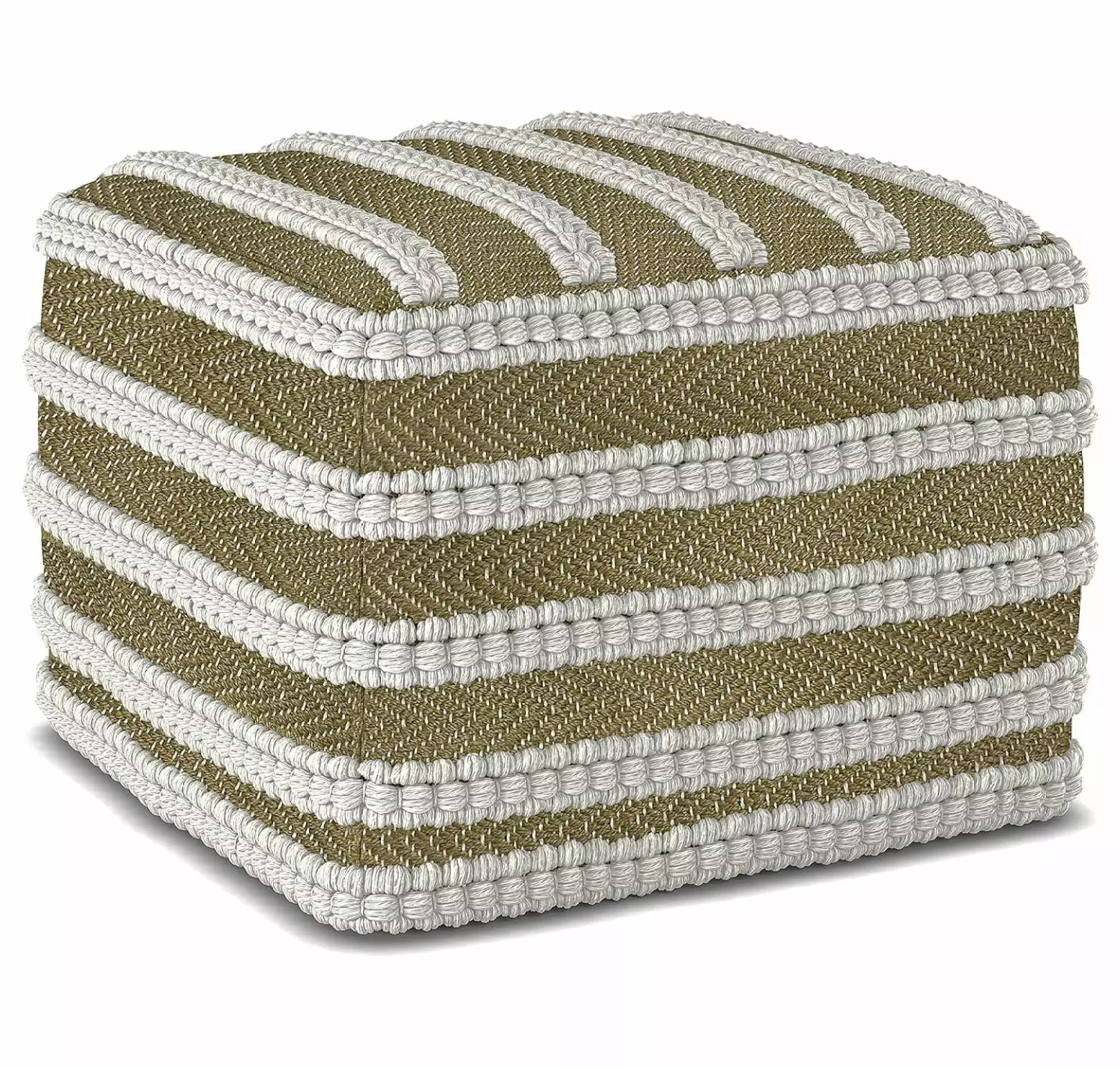 ZHOUB Liam 18 Inch Boho Square Woven Outdoor/ Indoor Pouf in Natural and White Recycled PET Polyester. For the Living Room. Bedroom and