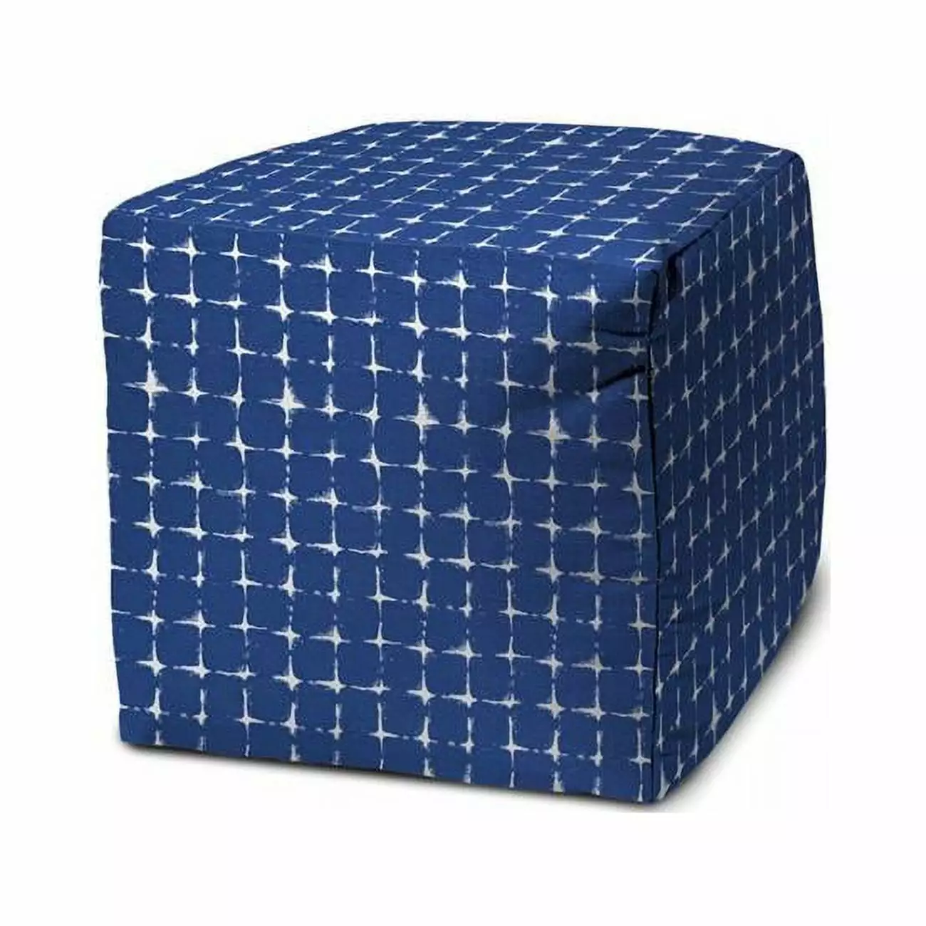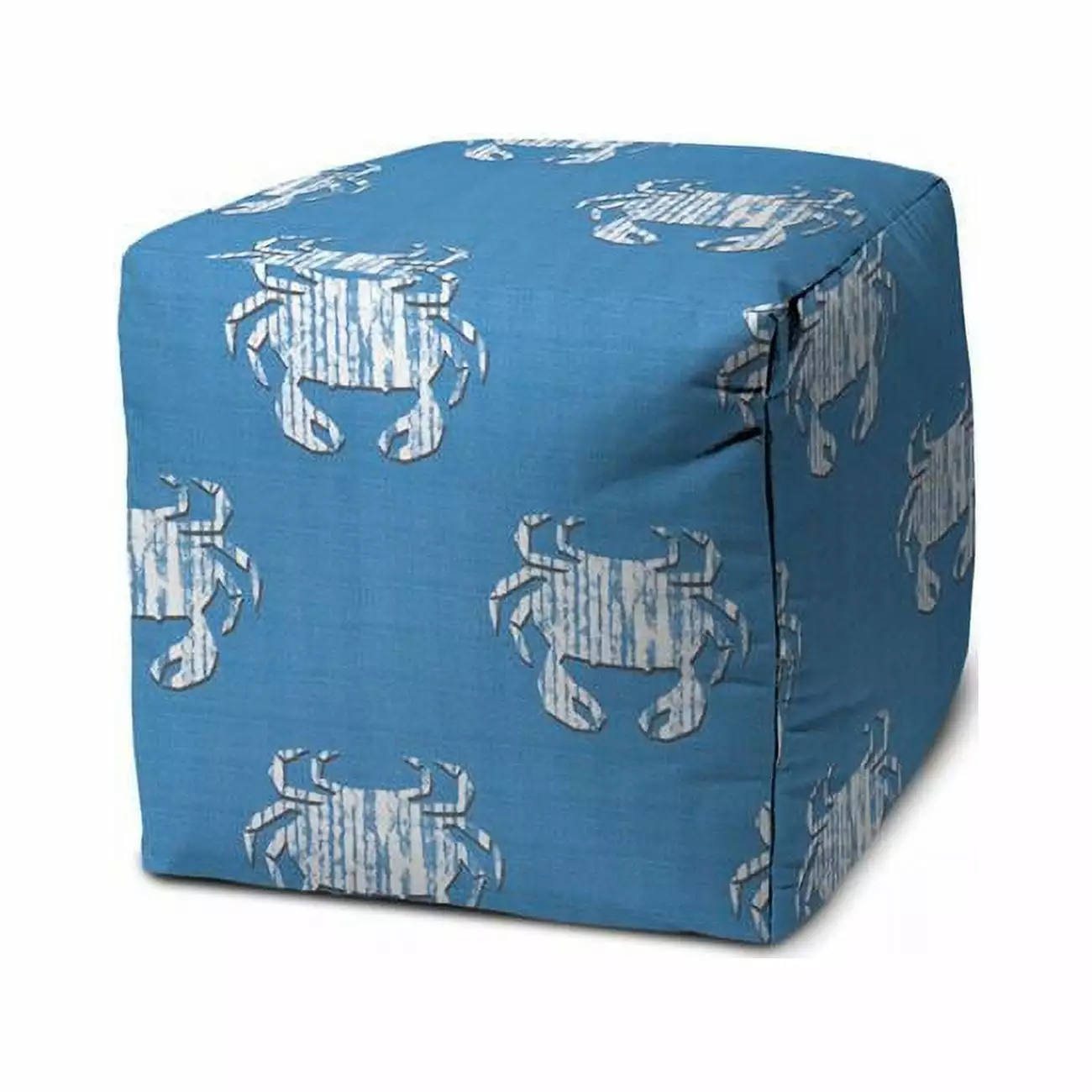 17 in. Blue & White Polyester Cube Crab Indoor & Outdoor Pouf Ottoman