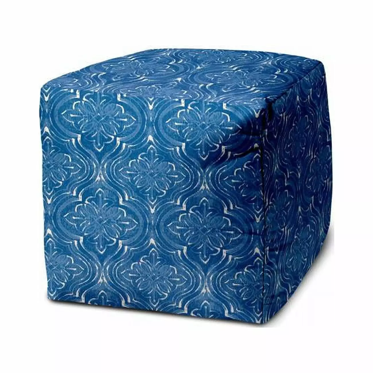 17 in. Blue & White Polyester Cube Daminquire Indoor & Outdoor Pouf Ottoman
