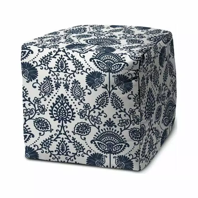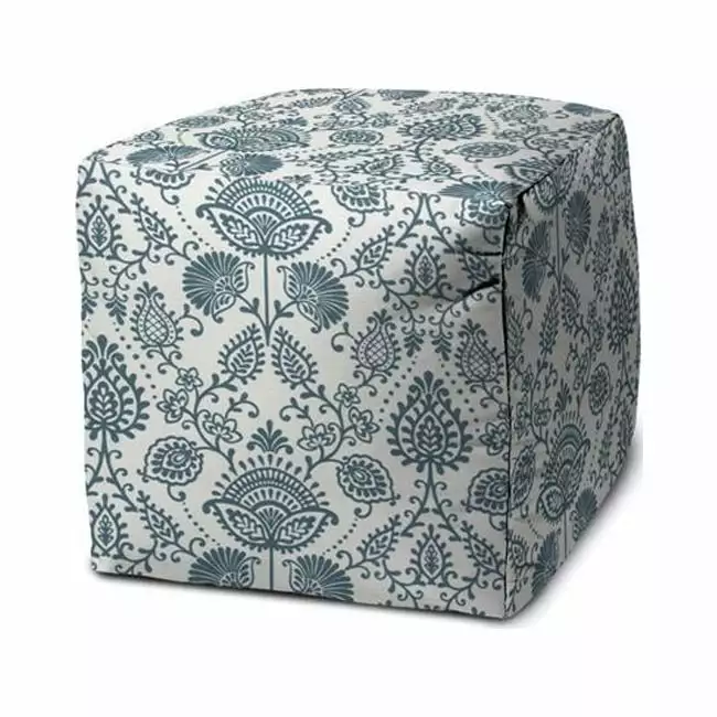 17 in. Polyester Cube Floral Indoor & Outdoor Pouf Ottoman. Blue & White