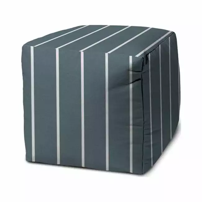 17 x 17 x 17 in. Blue Polyester Cube Striped Indoor & Outdoor Pouf Ottoman