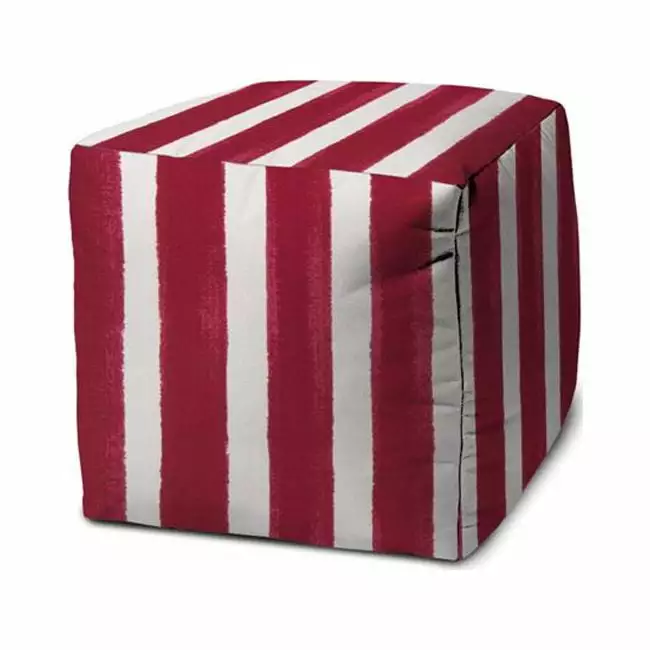 17 x 17 x 17 in. Red & White Polyester Cube Striped Indoor & Outdoor Pouf Ottoman