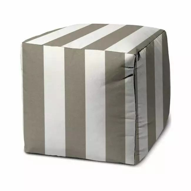 17 x 17 x 17 in. Taupe Polyester Cube Striped Indoor & Outdoor Pouf Ottoman