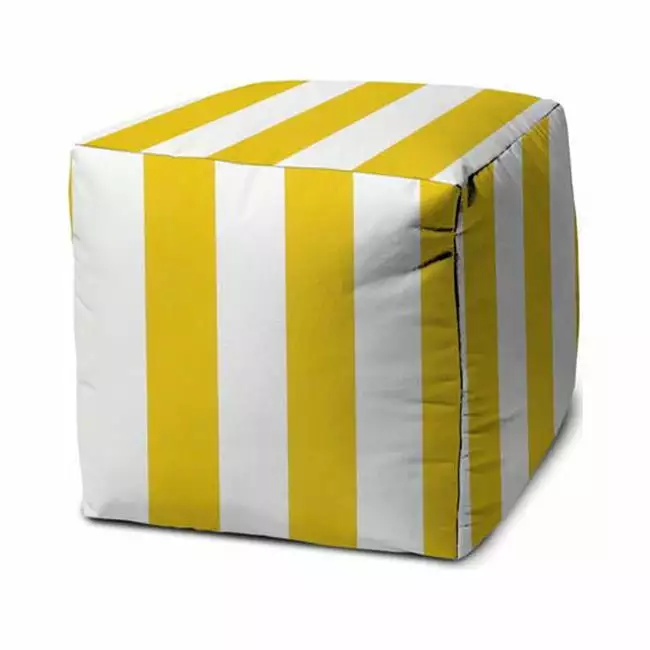 17 x 17 x 17 in. Yellow & White Polyester Cube Striped Indoor & Outdoor Pouf Ottoman
