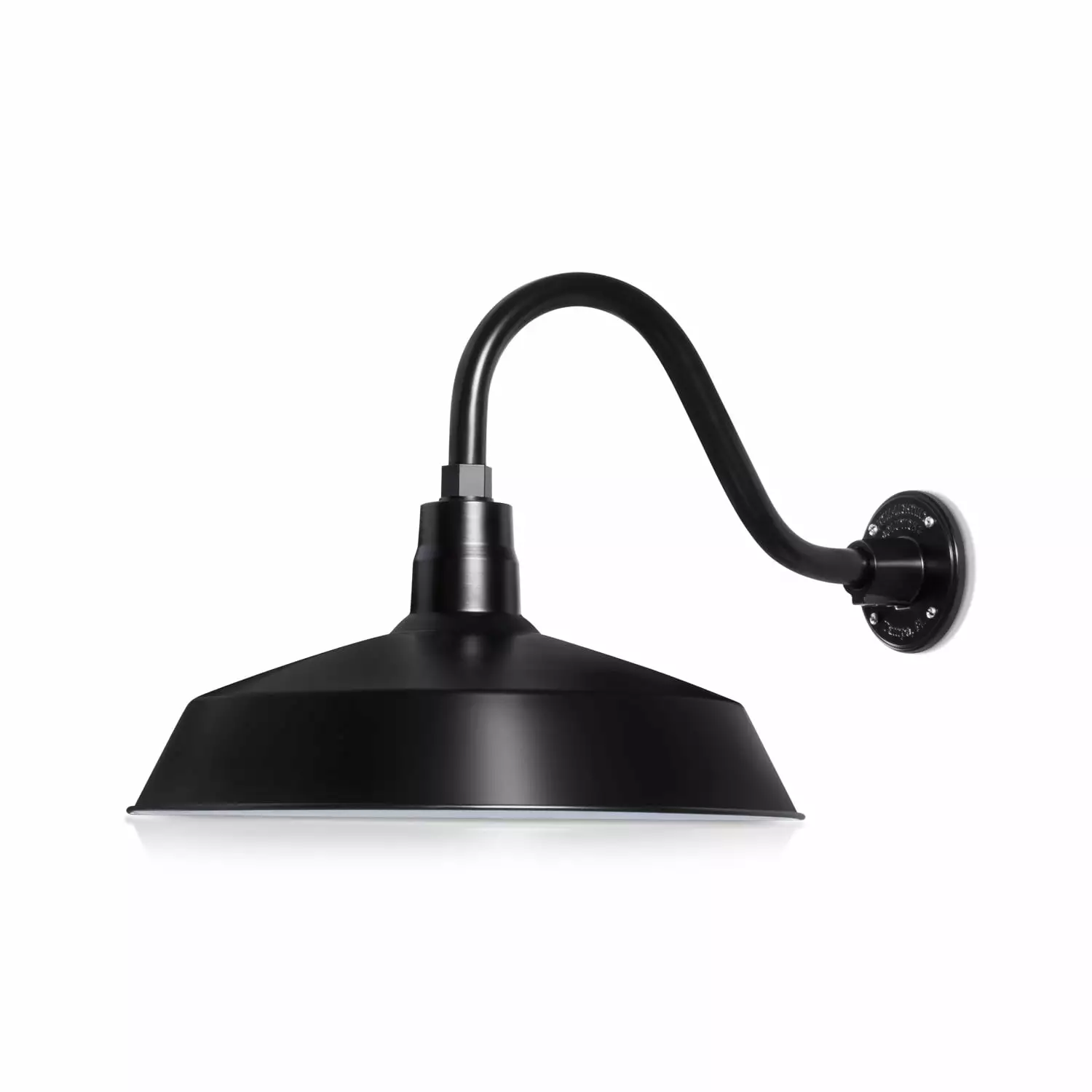 17in. Satin Black Outdoor Gooseneck Barn Light Fixture With 14.5 in. Long Extension Arm – Wall Sconce Farmhoutilize. Vintage. Antique Style – UL Listed – 9W 900lm A19 LED Bulb (5000K Cool White)