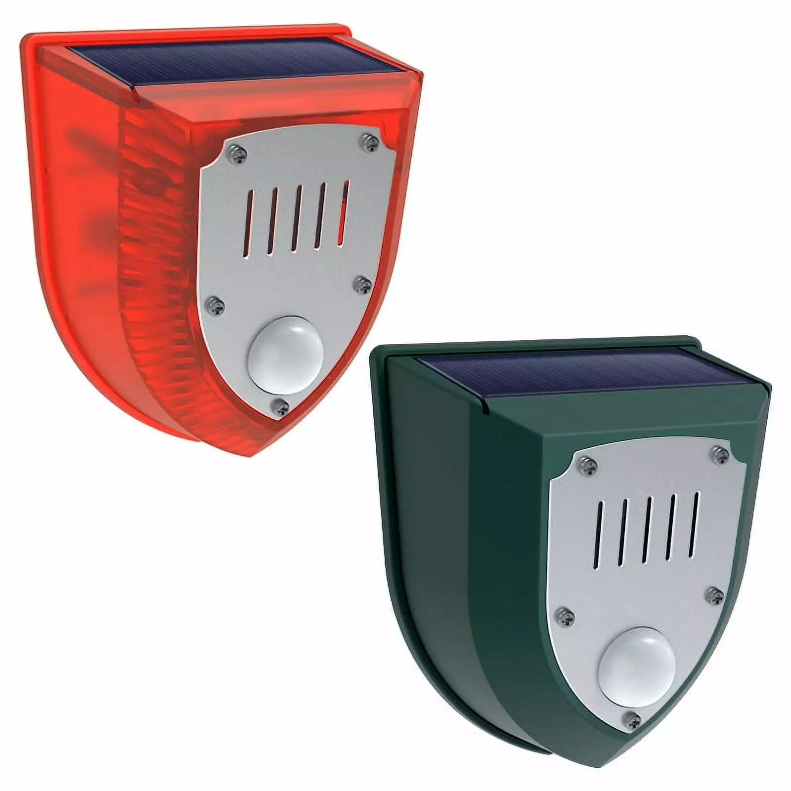 2 Pack Solar Security Alarm Lights. 129dB Gunshot Sounds & Dog Barking Sound & Light Strobe Light Warning Lamp for Outdoor Farm Barn. Villa Yard