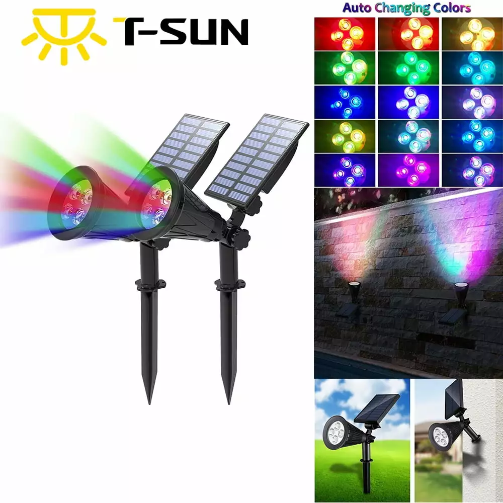 2 PACK Solar Spot Lights RGB Outdoor Garden Landscape Flood Path Wall Lamp US