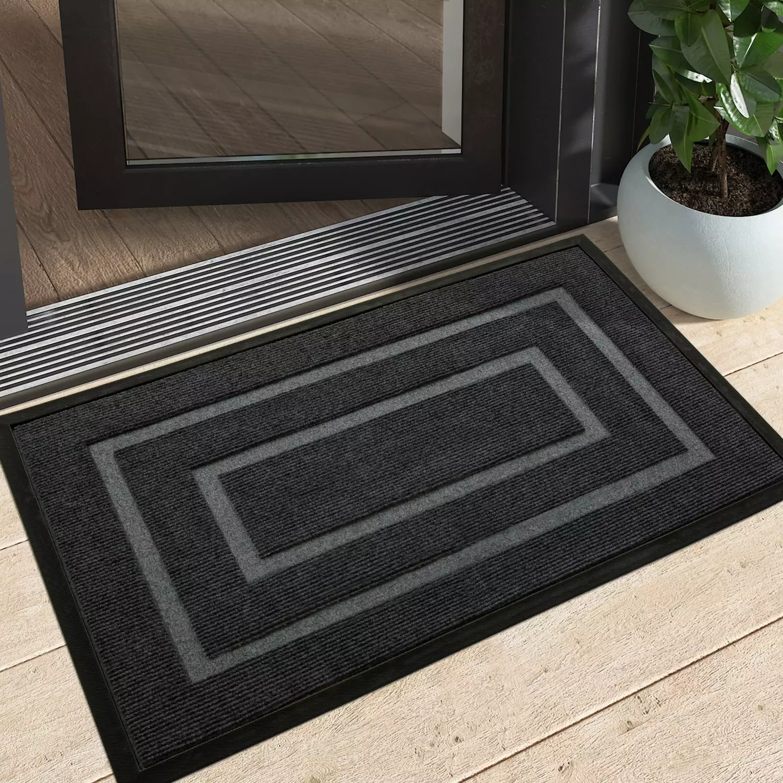 OEAKAY Door Mat Heavy Duty Welcome Mat for Front Door Stain Resistant Doormat Non-Slip Entrance Mat for Entryway. Patio. Garage. 29×17. Gray