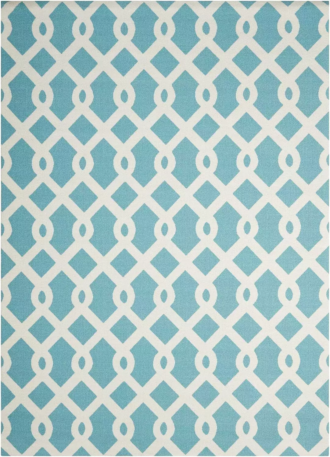 Sophie Abstract Nautical Outdoor Rug. 7′ x 9′. Blue and White