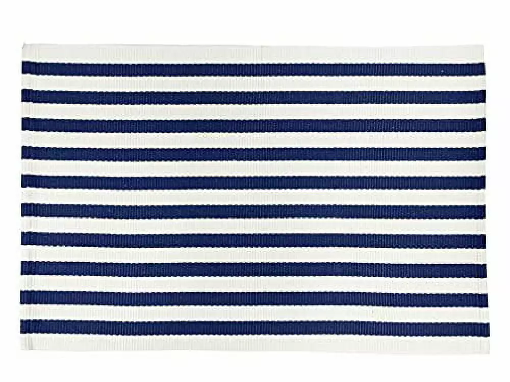 Fennco Styles Woven Timeless Striped Area Rug 24W x 36L – Navy Blue Cotton Blend Carpet Indoor Outdoor Floor Mat for Living Room. Entryway. Bedroom and Floor Dcor