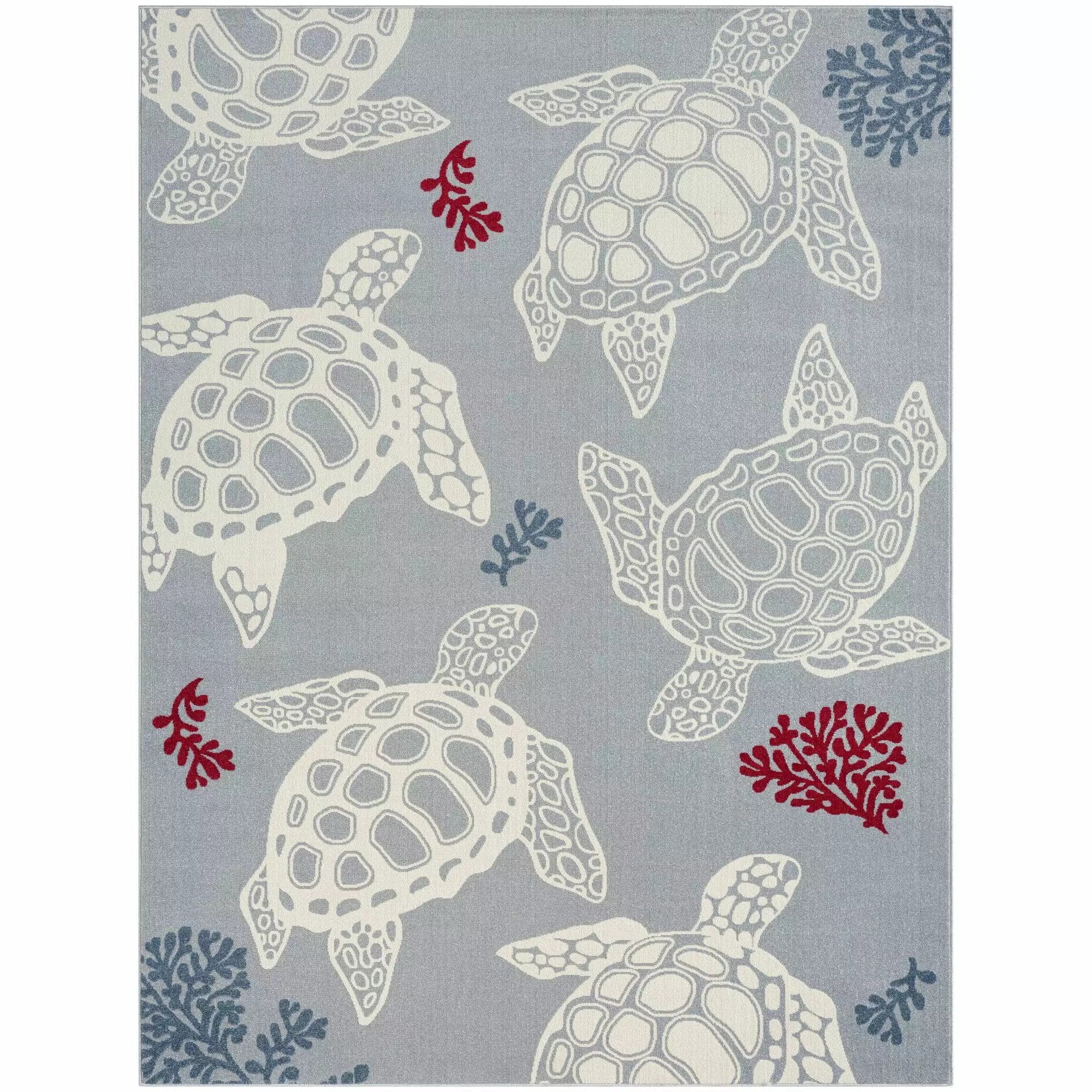 Home Dynamix Marine Sea Turtle Coastal Animal Indoor/Outdoor Area Rug. Grey/Ivory . 5’2×7’2