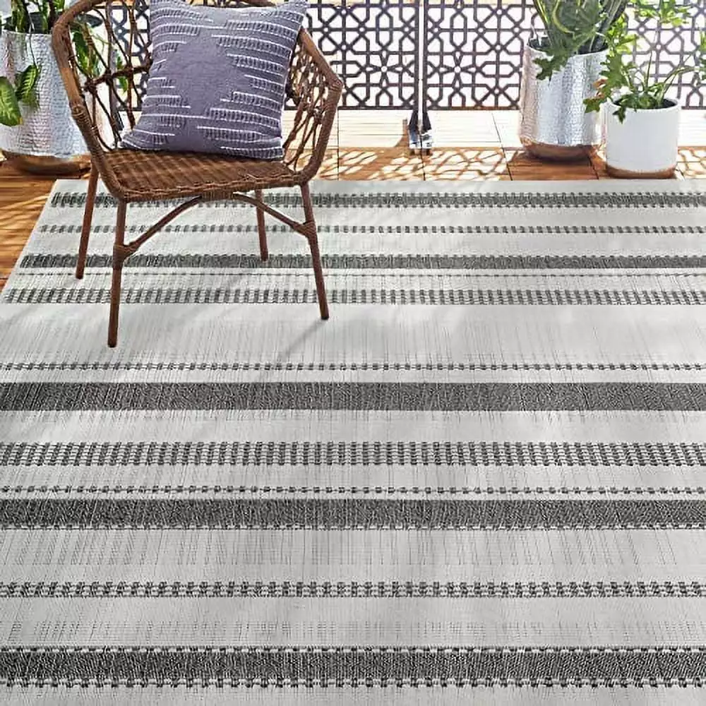 Home Dynamix Tripoli Mateo Modern Striped Indoor/Outdoor Area Rug. Charcoal/Cream. 5’3×7’3