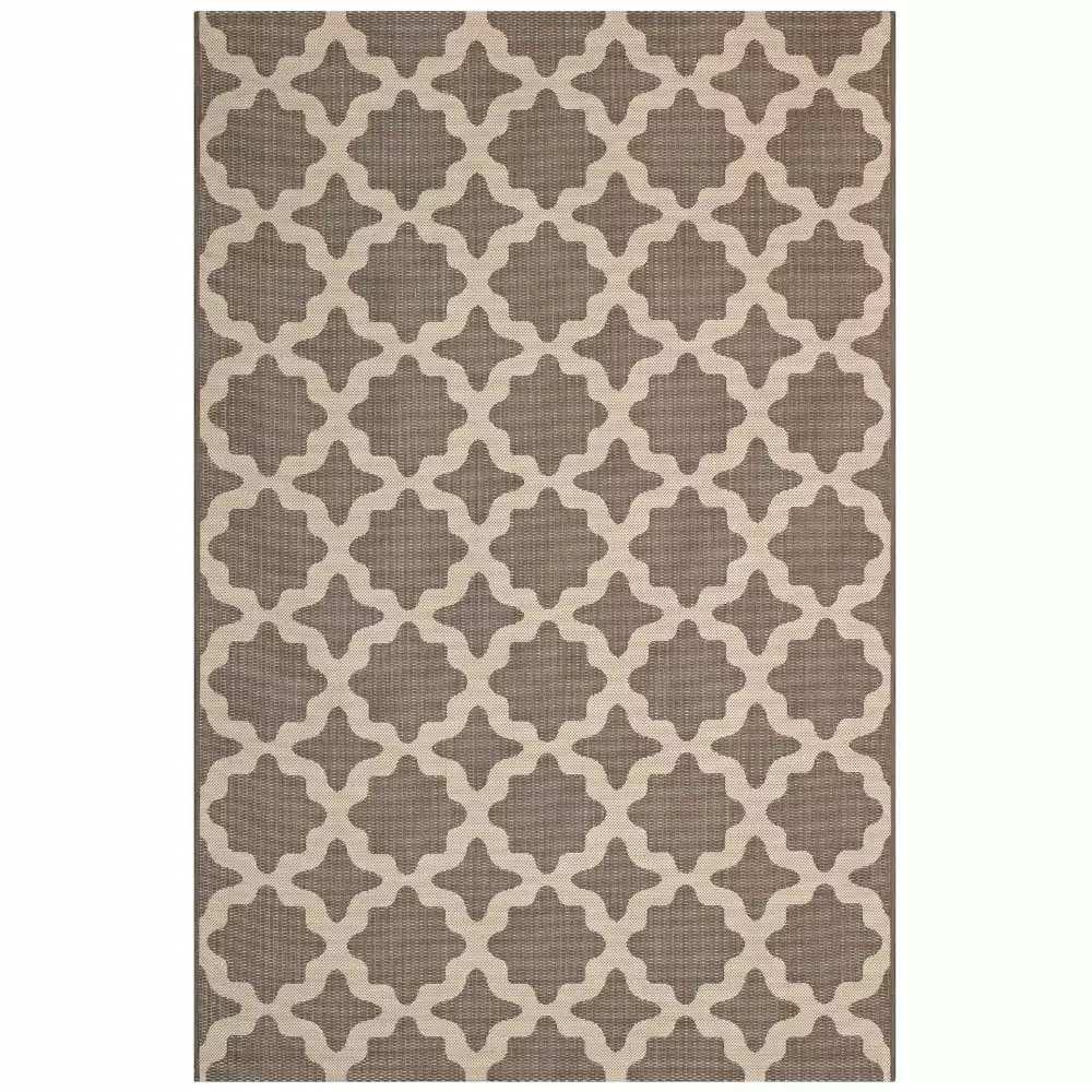 Modway Cerelia 94.5×122 Moroccan Trellis Fabric Area Rug in Light/Dark Beige