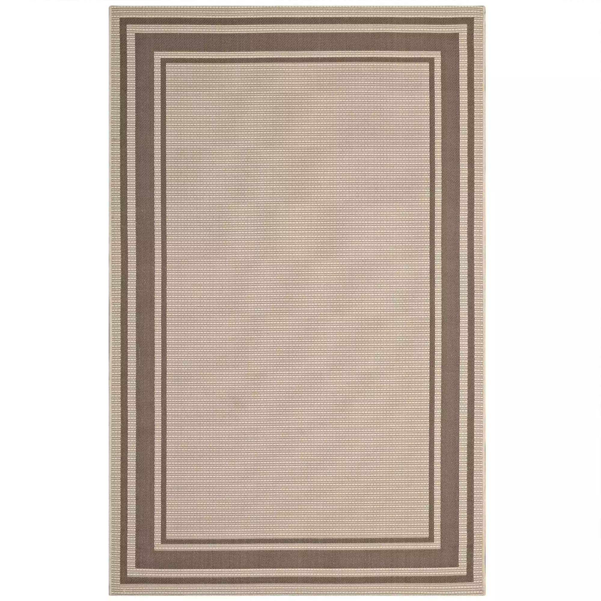 Modway Rim Solid Border 8 x 10 Ft Indoor Outdoor Area Rug. Light/Dark Beige