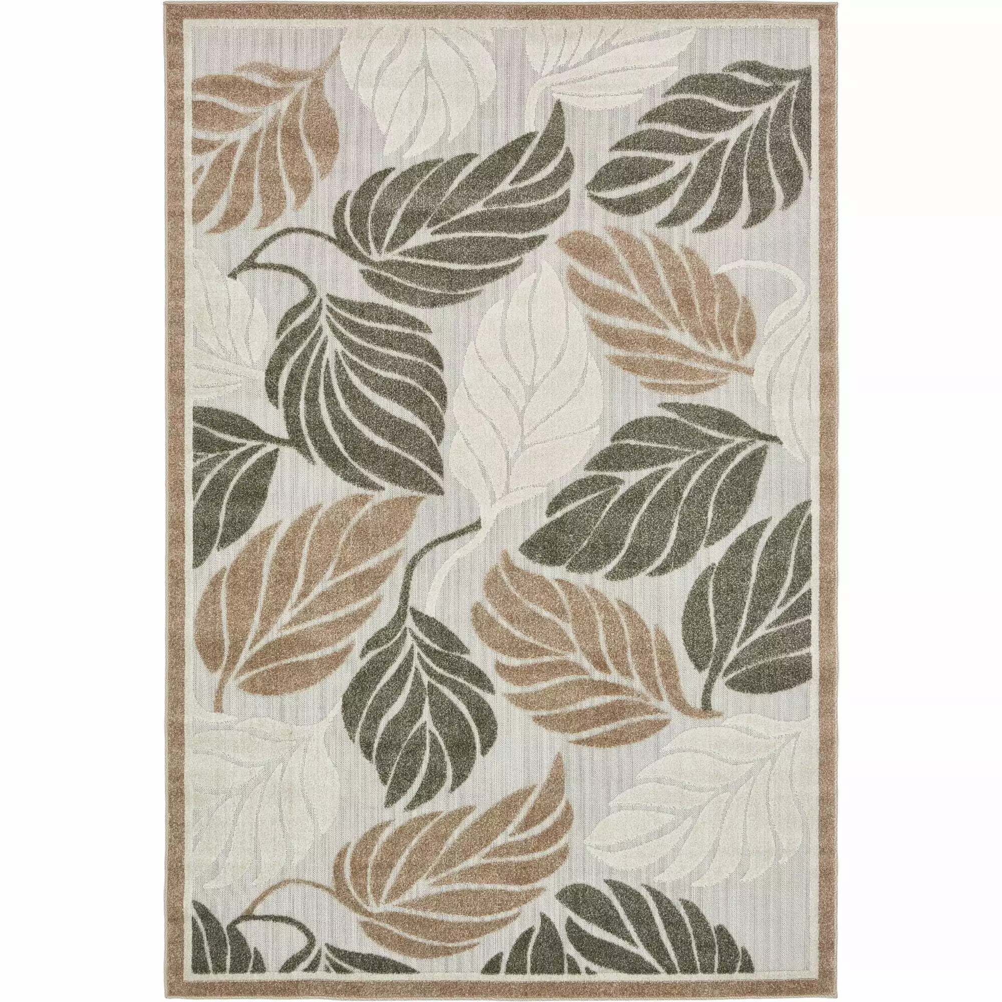 One-of-a-kind Loom Augusta Indoor/Outdoor Botanical Rug Beige/Ivory 6′ 1 x 9′ Rectangle Border Tropical Perfect For Patio Deck Garage Entryway