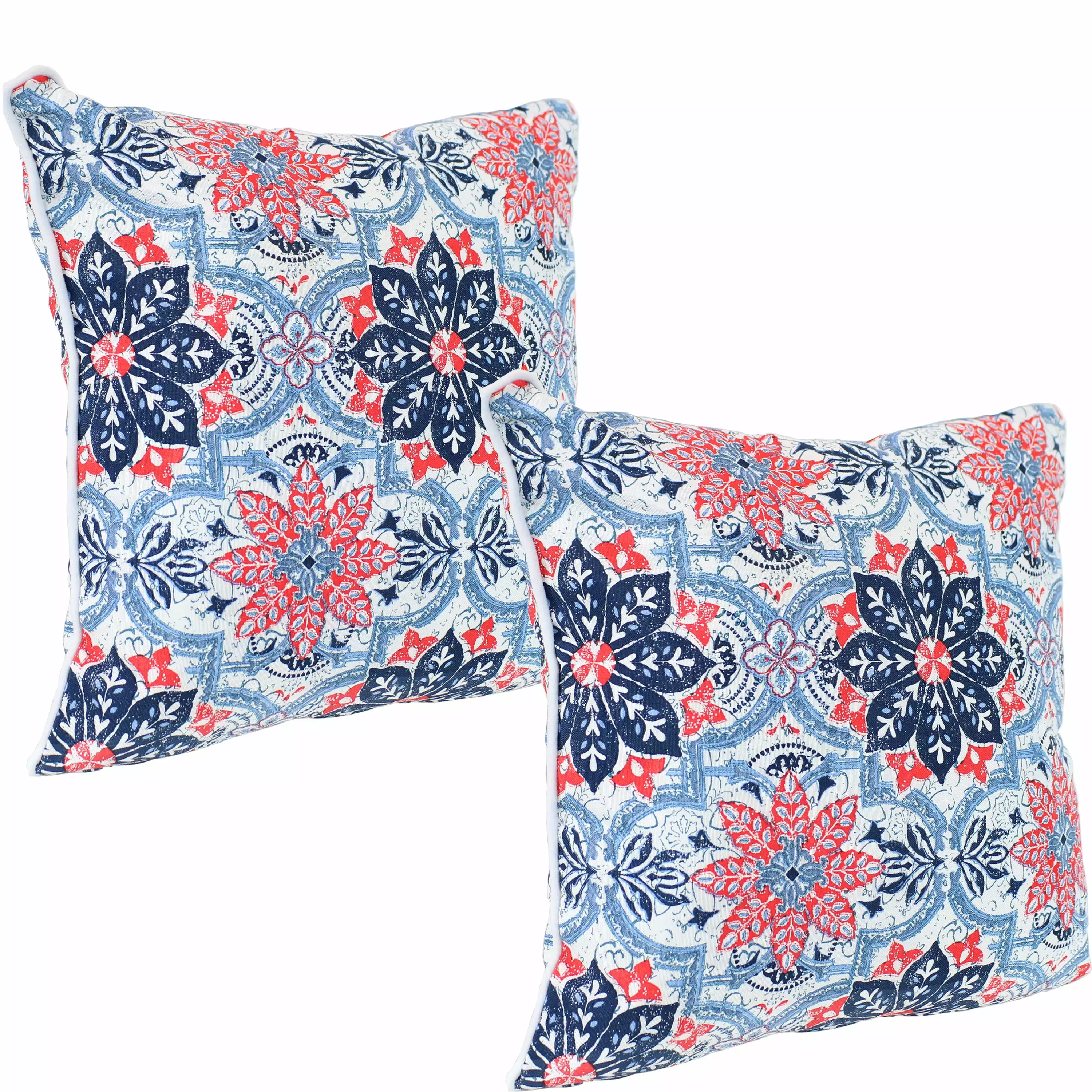 Sunnydaze Polyester Indoor/Outdoor Decorative Throw Pillow – Set of 2 – Red and Blue Floral