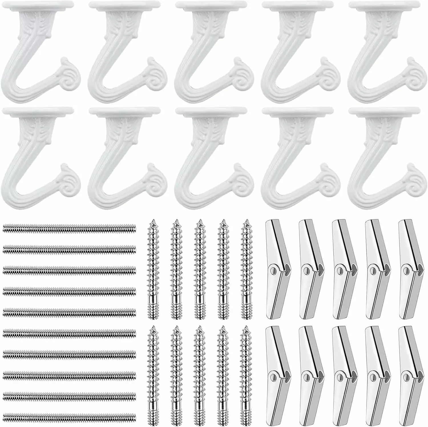 SEISSO 10 Sets Ceiling Hooks – Heavy Duty Metal Swag Hook with Hardware and Toggle Wings for Hanging Plants Ceiling Setup Cavity Wall Fixing (White)