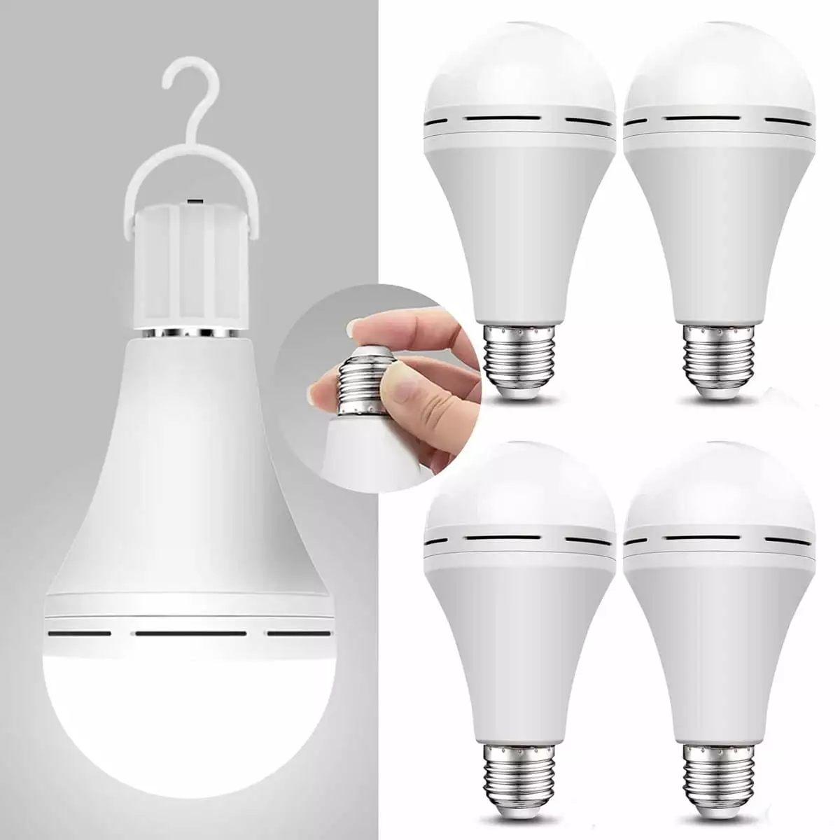 4pcs 12W E27 Base Rechargeable Emergency LED Light Bulbs for Power Outages Emergency Use