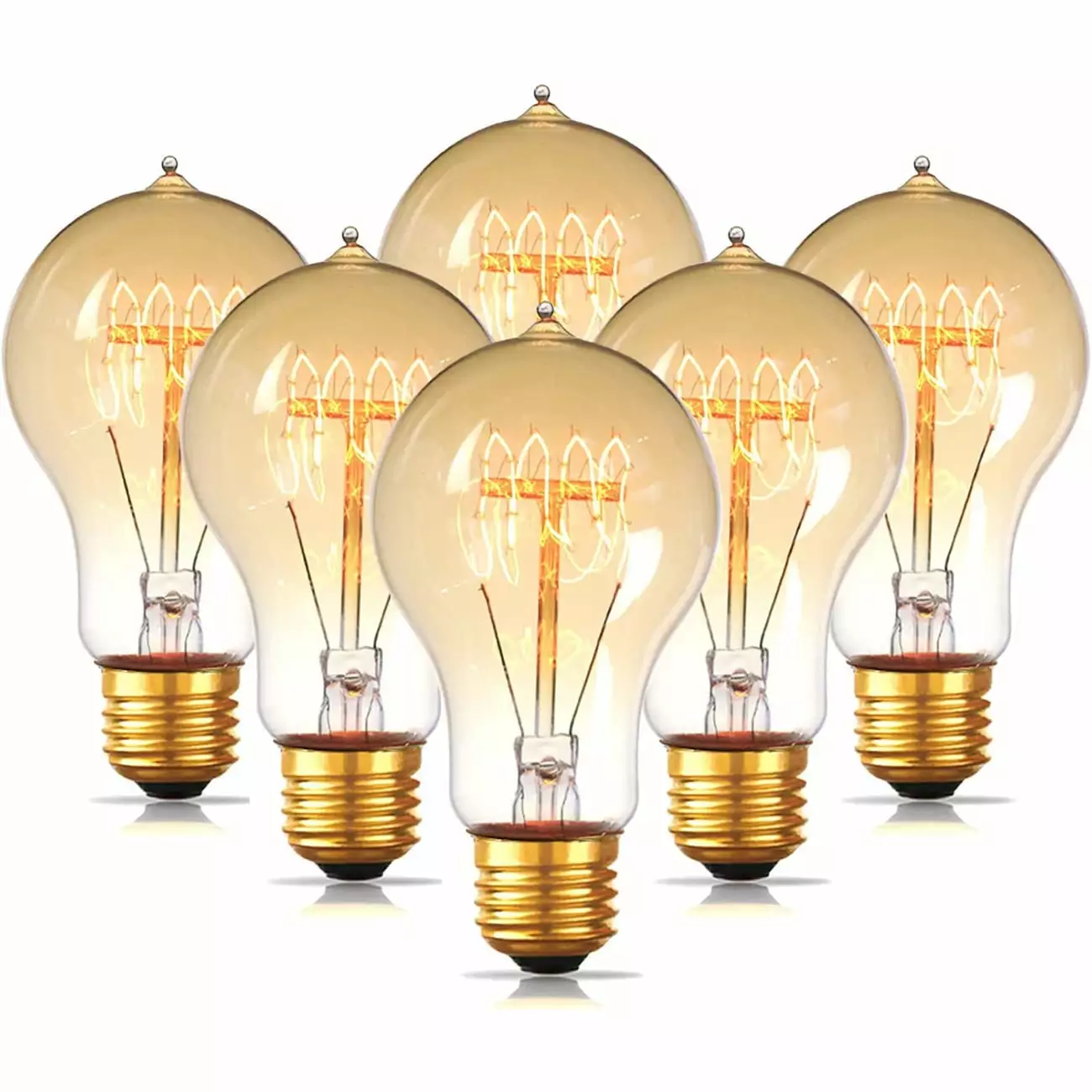 6-Pack A60(A19) Edison Light Bulbs. Vintage Style 60W Dimmable Squirrel Cage Filament Incandescent Bulb. Amber Glass Decorative E26 Light Bulb. 2200K Warm White. Indoor or Outdoor Light Fixtures