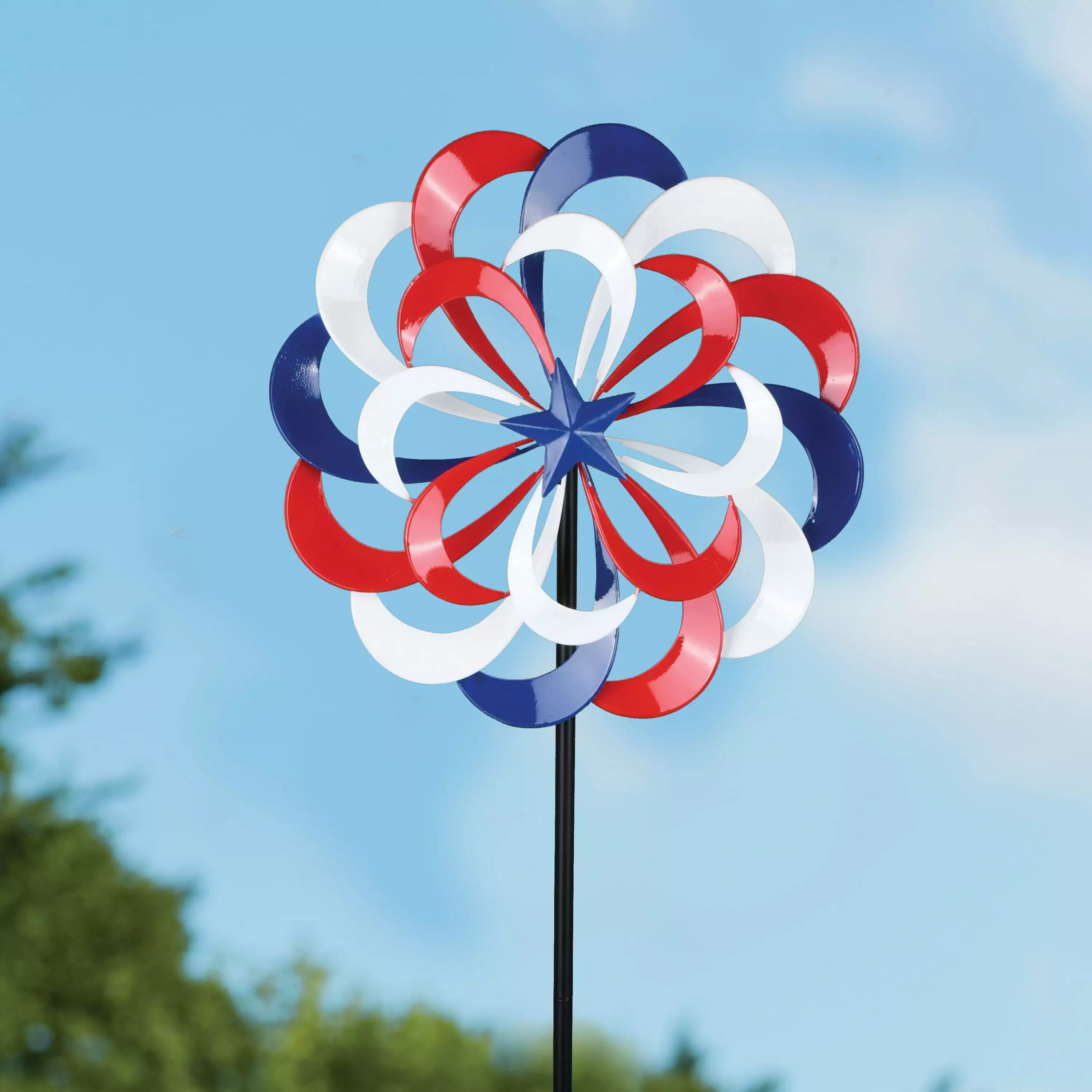 Way to Celebrate 49.4 Height Red. White. & Blue Patriotic Metal Flower Wind Spinner