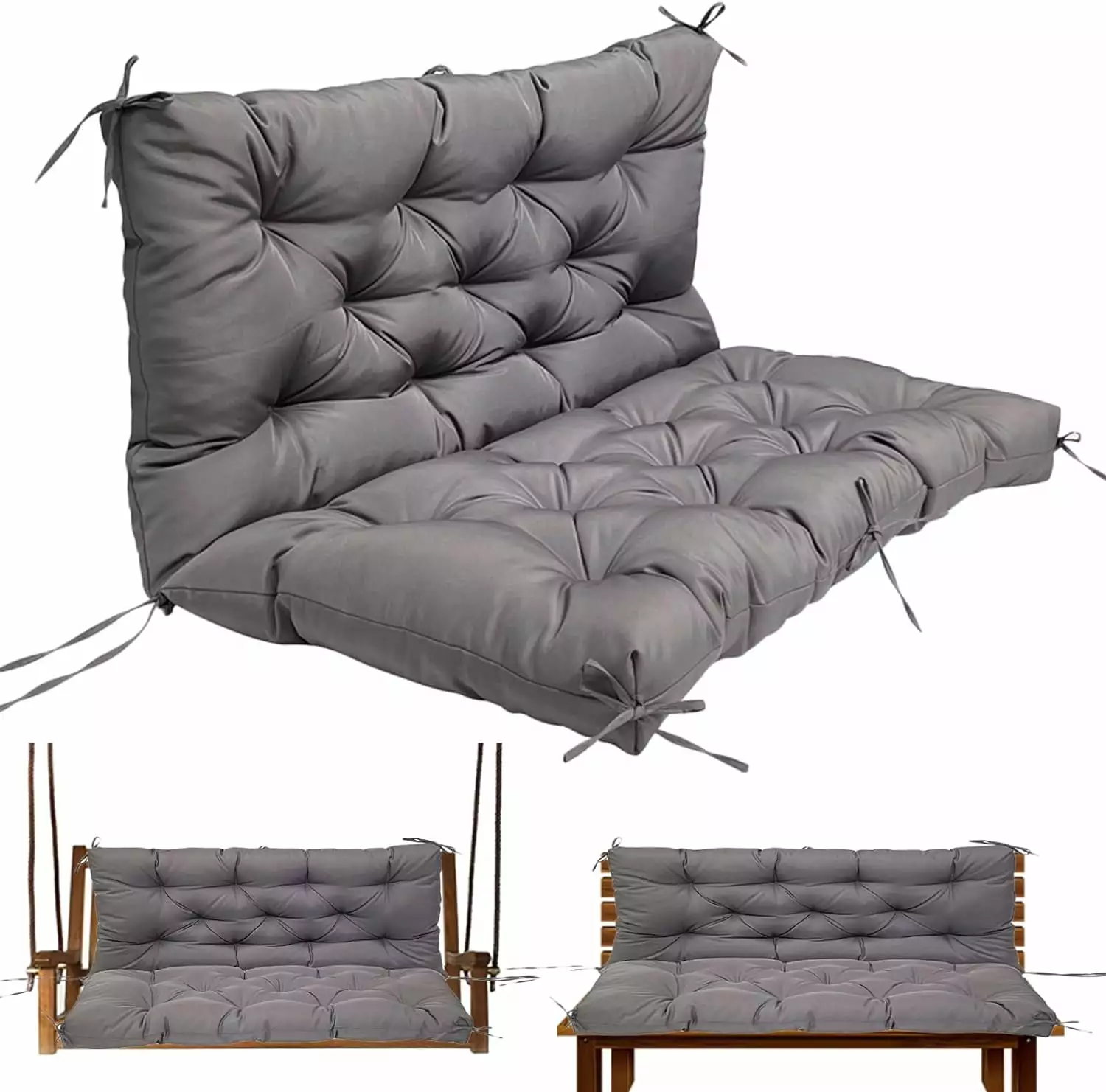 zanzan Outdoor Swing Cushions for Outdoor Furniture Waterproof 2-3 Seater Bench Cushion Replacement 4 Thick with Backrest & Ties for Patio Backyard Garden. 60 x 40 Inch. Dark Grey