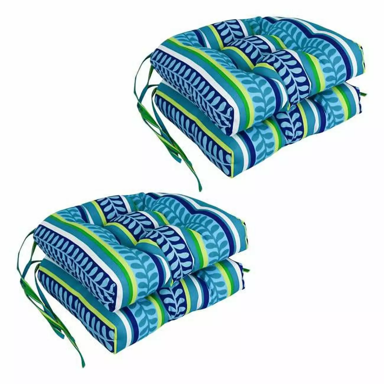 16 in. Spun Polyester Patterned Outdoor U-Shaped Tufted Chair Cushions. Pike Azure – Set of 4