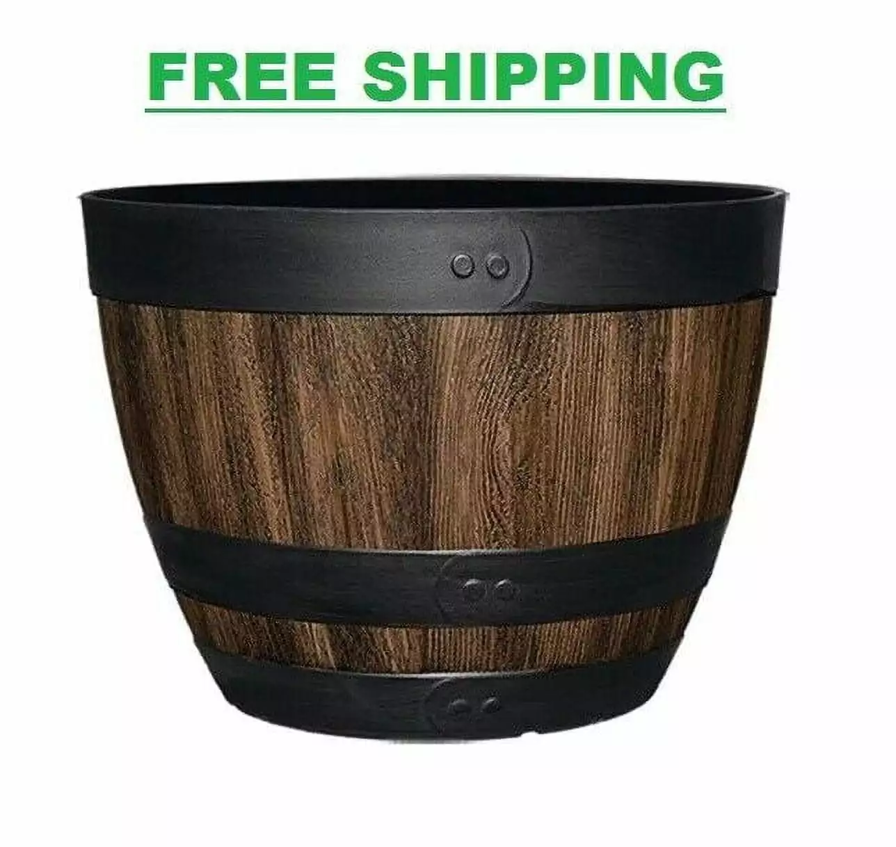 16 Inch Resin Barrel Planter Indoor Outdoor Garden Decor Large Flower Plant Pot