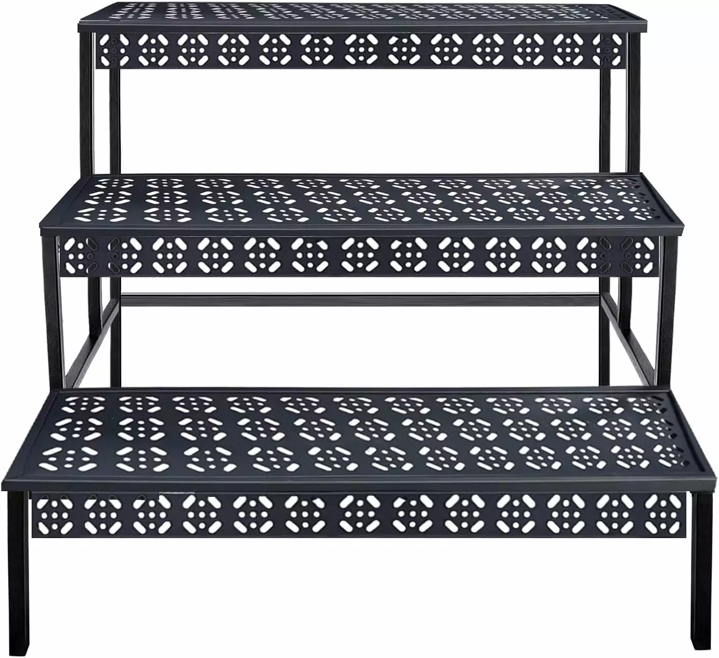 3 Tier Stair Style Metal Plant Stand. Garden Shelf for Large Flower Pot Display Rack Indoor Outdoor. Black