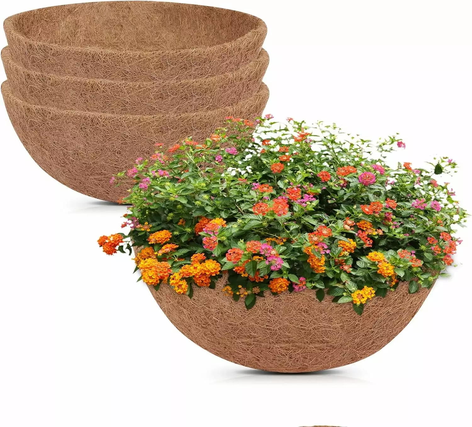 4pcs 14 Round Coco Hanging Binquireet Liners. Coconut Fiber Replacement Garden Outdoor for Planters Pot