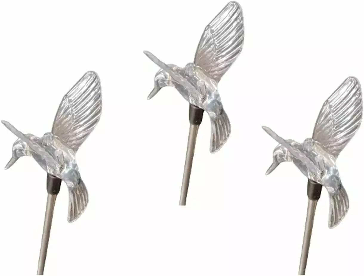 3 PCS Solar Color Changing HUMMINGBIRD WING UP Style Garden Stake Light