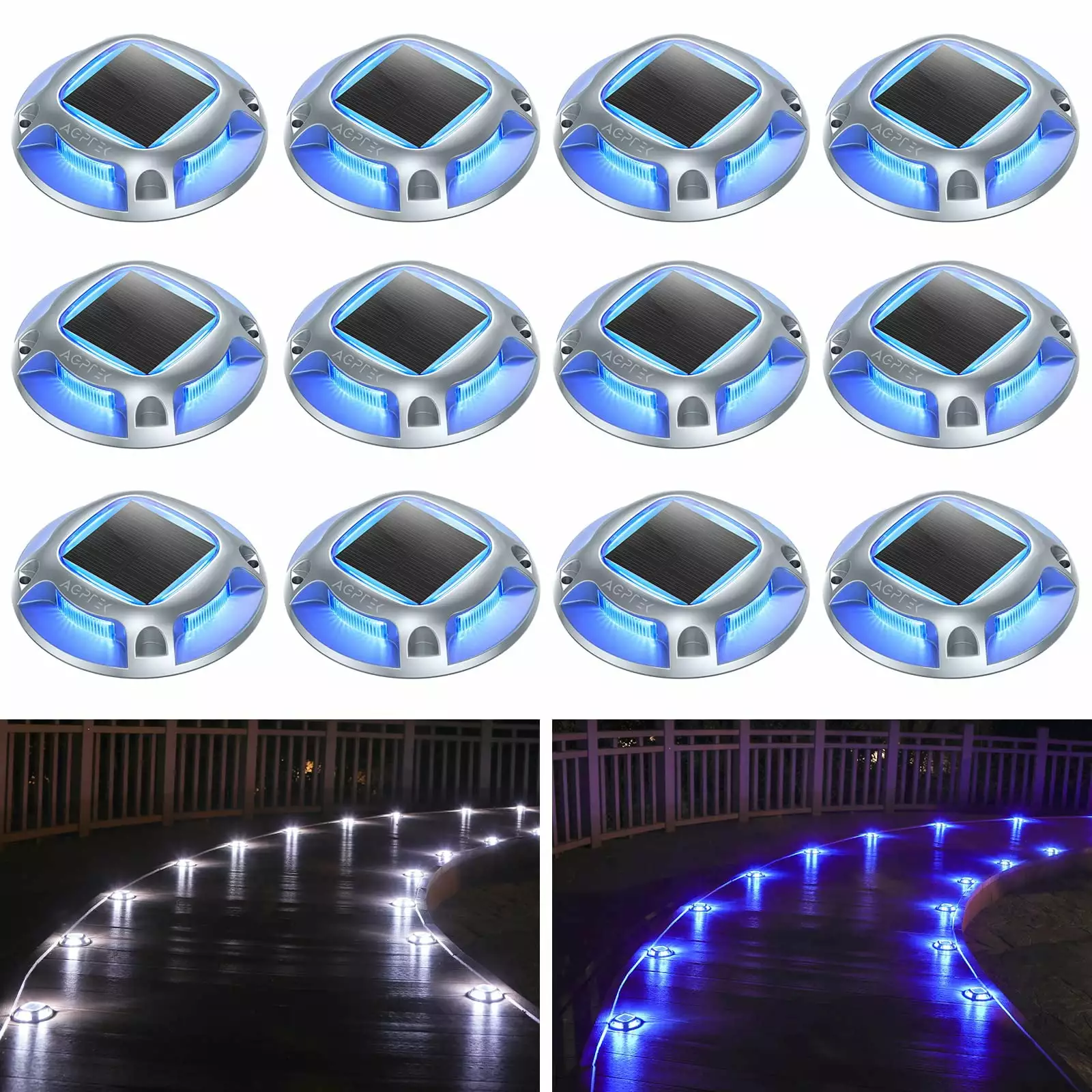AGPTEK Solar Deck Lights. 2 Color Modes(Blue Light/Cool White) Dock Lights Waterproof Driveway Markers Step Lights. 12 Packs