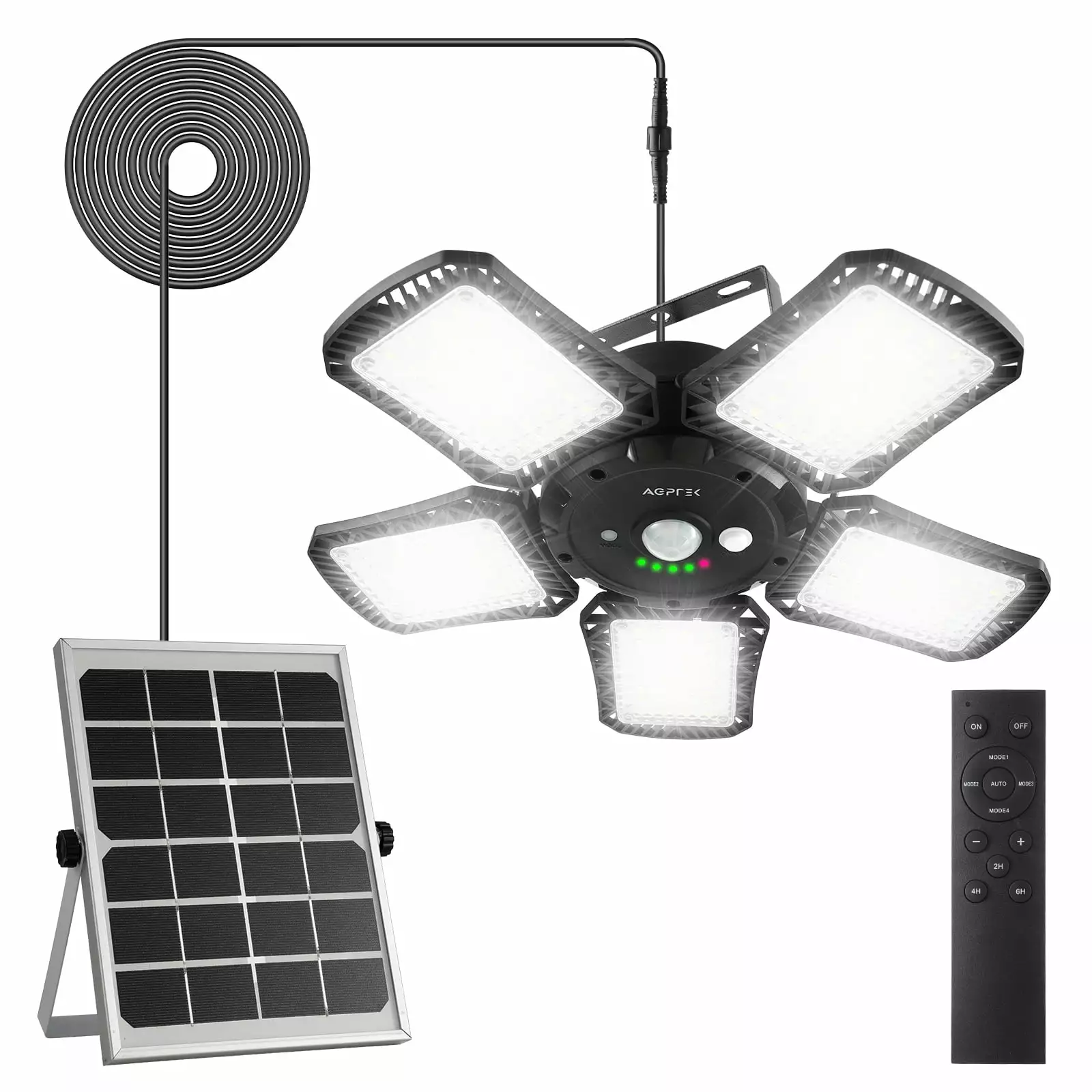 AGPTEK Solar Shed Lights. Solar Pendant Lights with Remote for Indoor Outdoor. Black