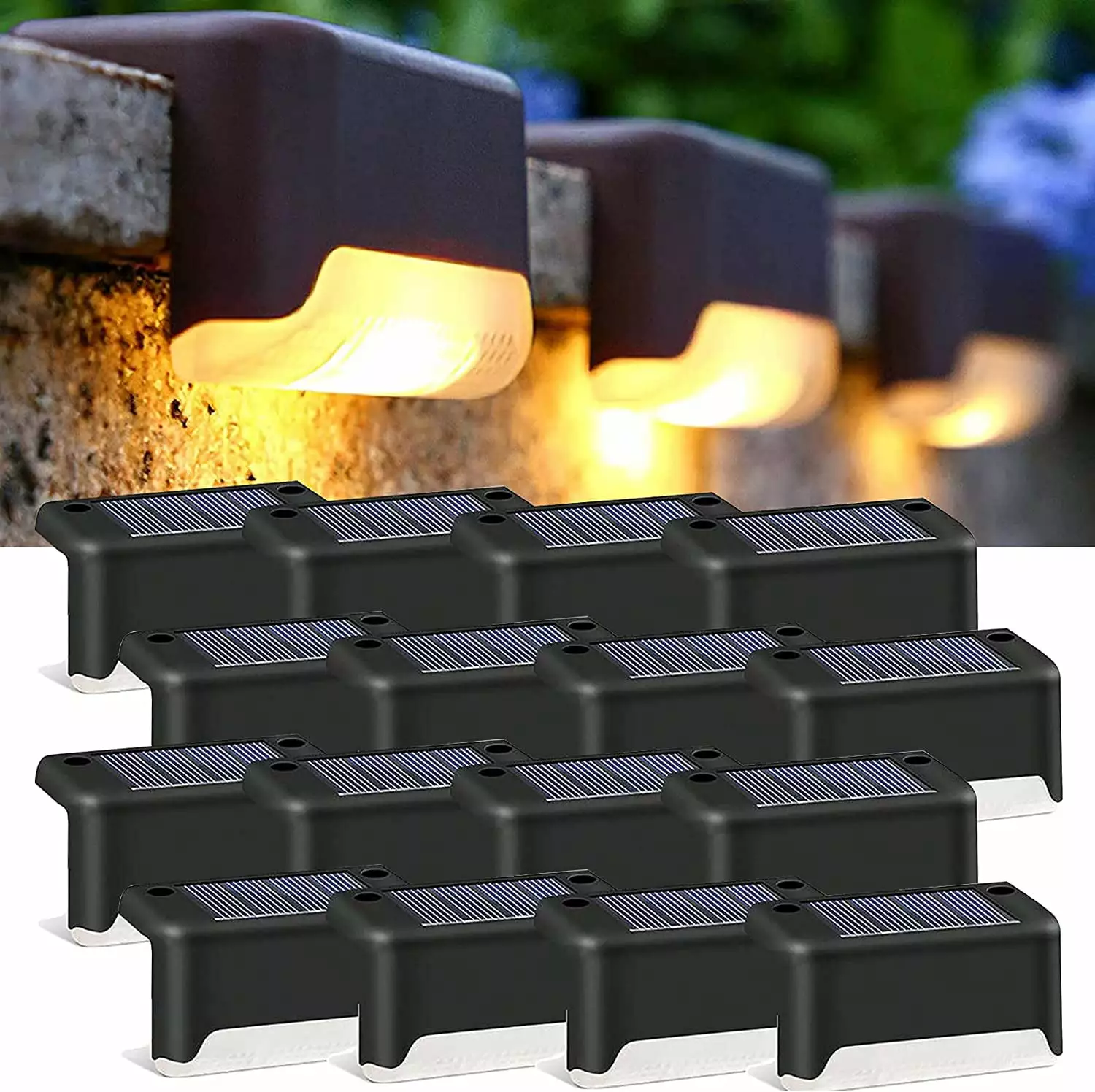 16 Pack Solar Deck Lights. Solar Step LED Lights for Outdoor. Waterproof Solar LED Lights for Deck. Step. Railing. Wall. Patio. Garden. Stair. Yard and Driveway Path (Warm White)